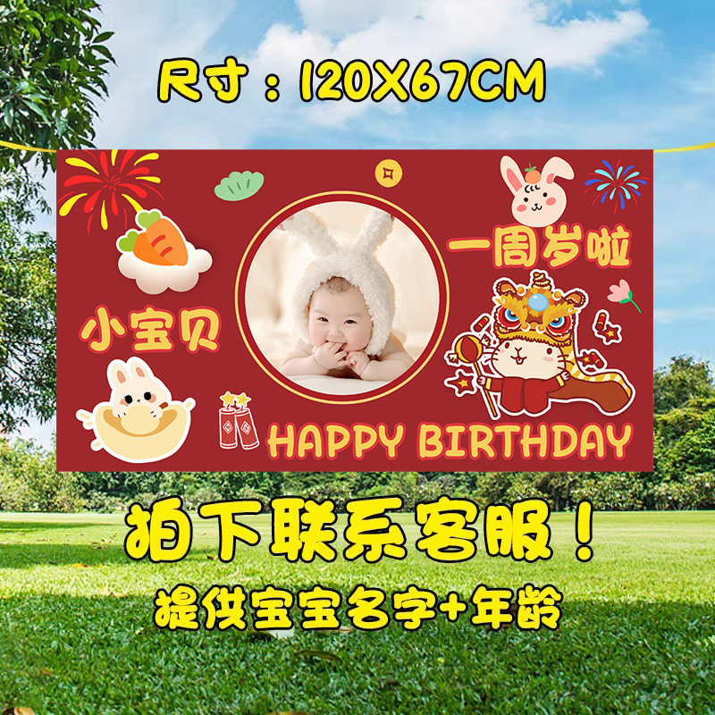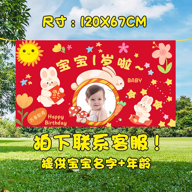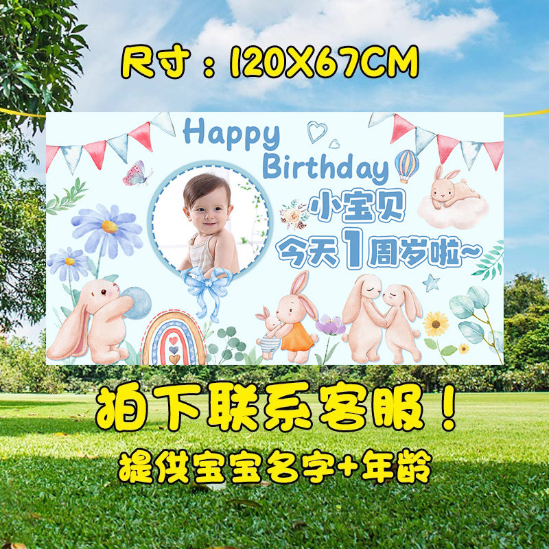 📚 兔宝宝2周岁生日派对背景墙海报女孩儿童抓周礼氛围装饰布置定制