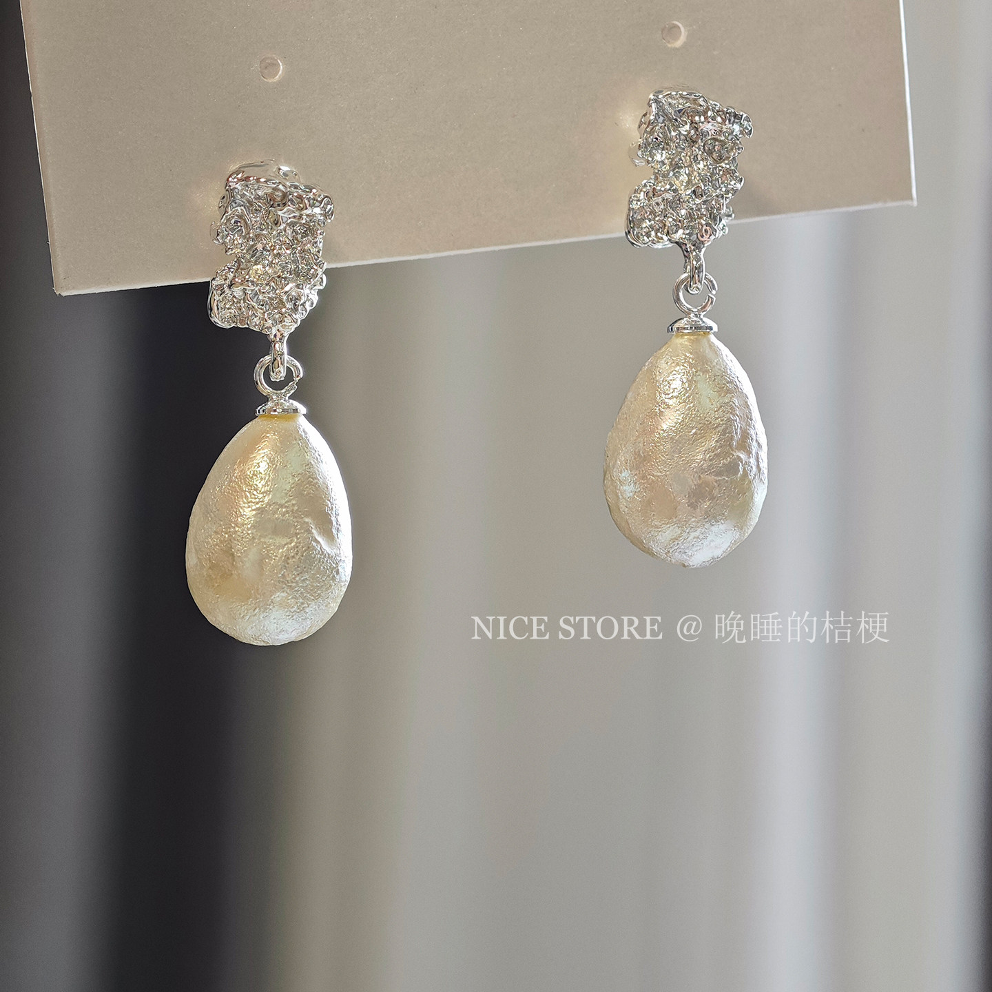 📚 晚睡的桔梗「公主露易丝」法式肌理感棉花珍珠吊坠耳环高级感耳饰