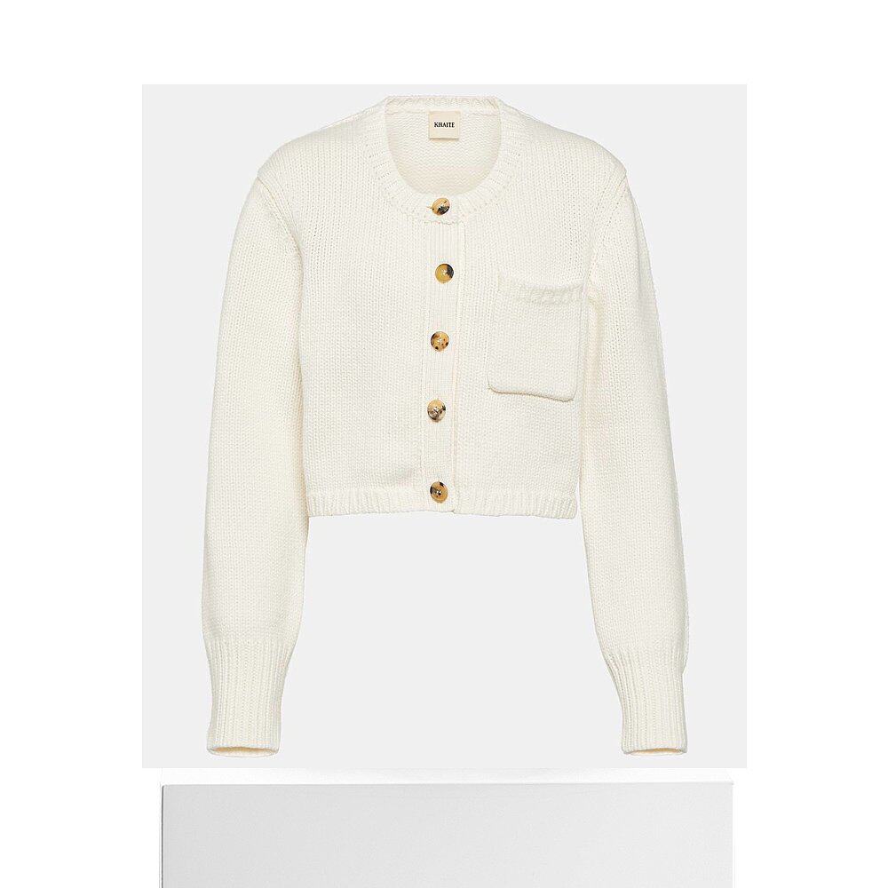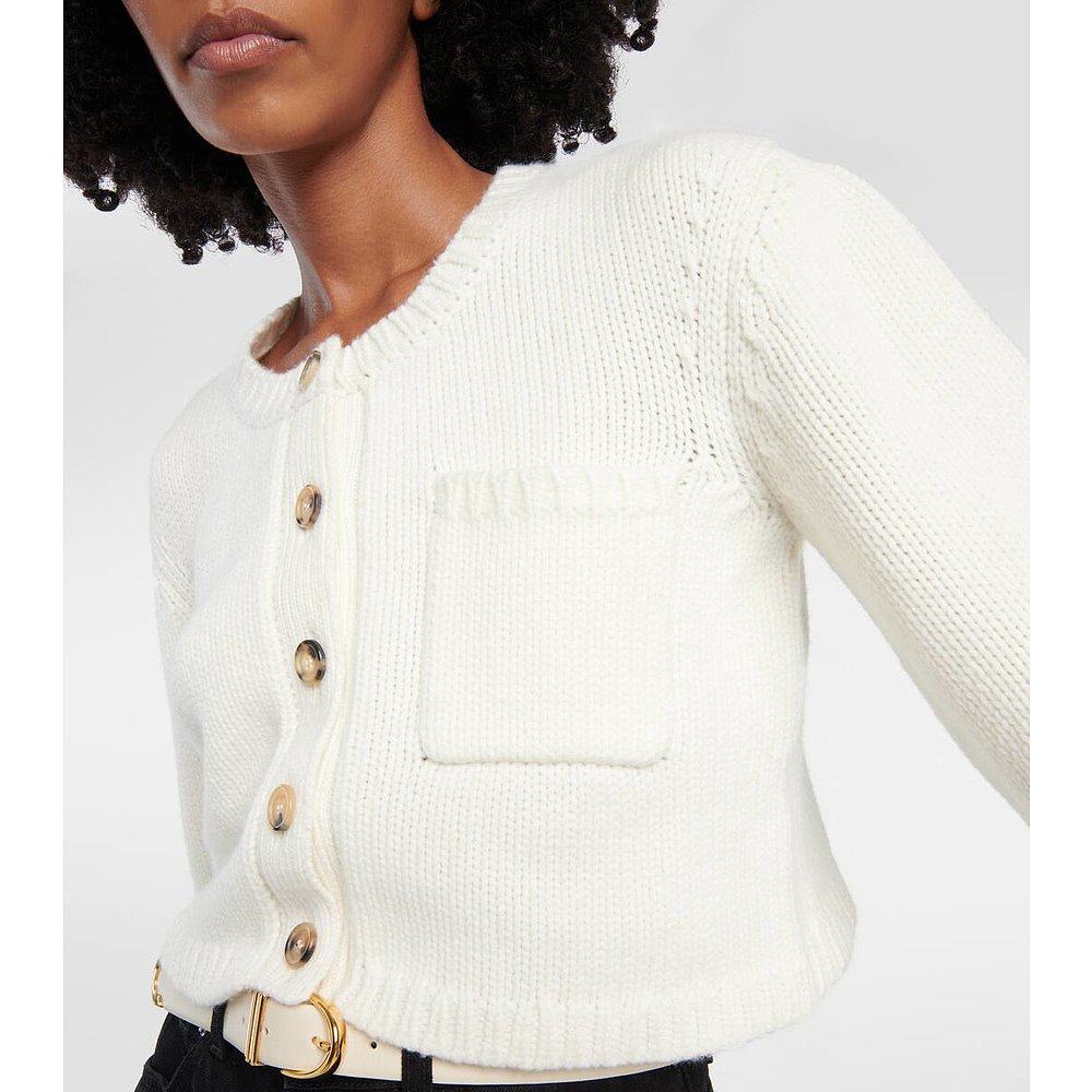📚 1h可退 香港直邮KHAITE 女士 Lavan 短款羊绒针织开衫 white白色