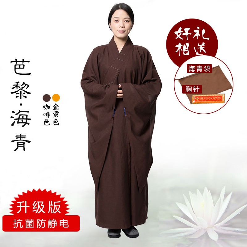 📚 台湾芭黎台产麻纱海青居士服海清僧服男套装夏季麻纱海青