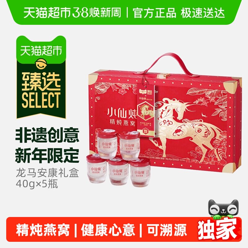 📚 臻选小仙炖燕窝龙马安康礼盒40g*5瓶即食燕窝滋补品孕妇38节礼物