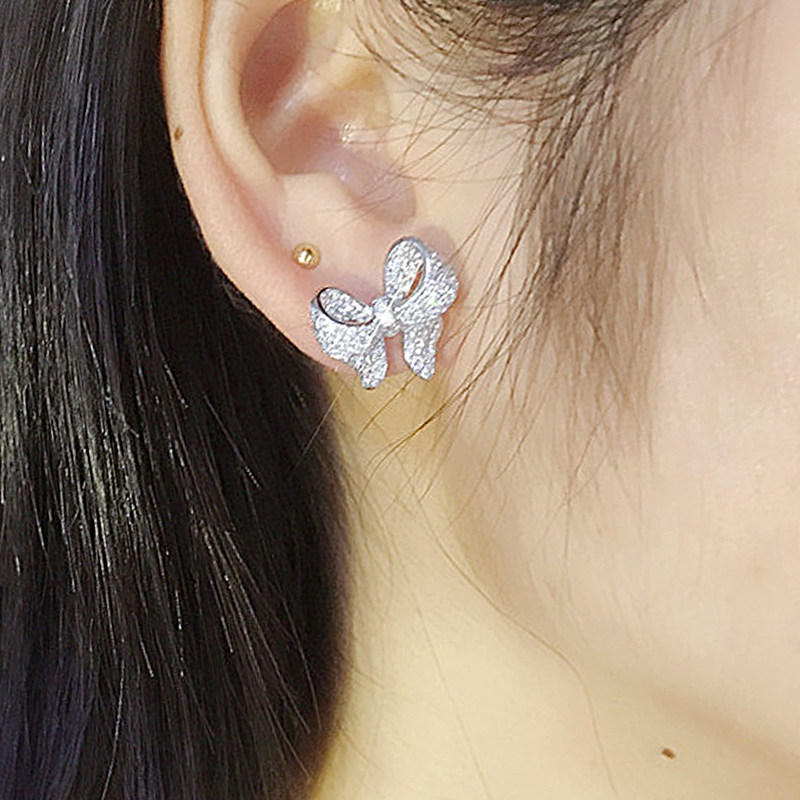 耳钉铂金耳饰蝴蝶结白金