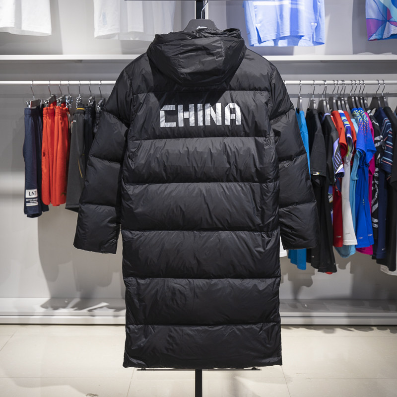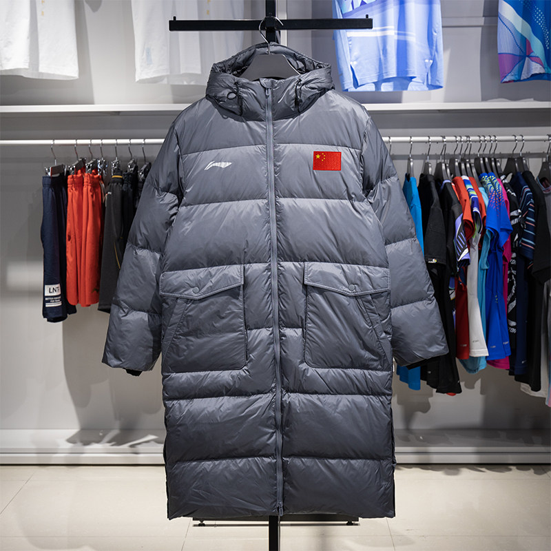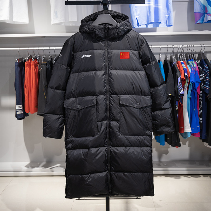 📚 李宁国旗长款羽绒服2024冬季男女同款鸭绒保暖连帽外套AYMU285