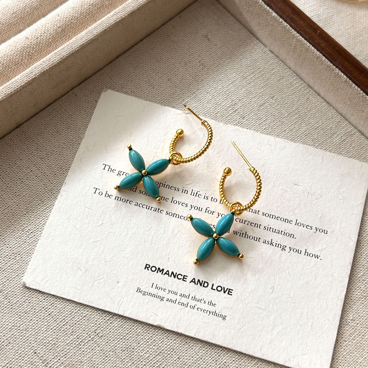 📚 新中式白百何同款四叶草绿松石耳环女轻奢小众高级感耳钉耳饰