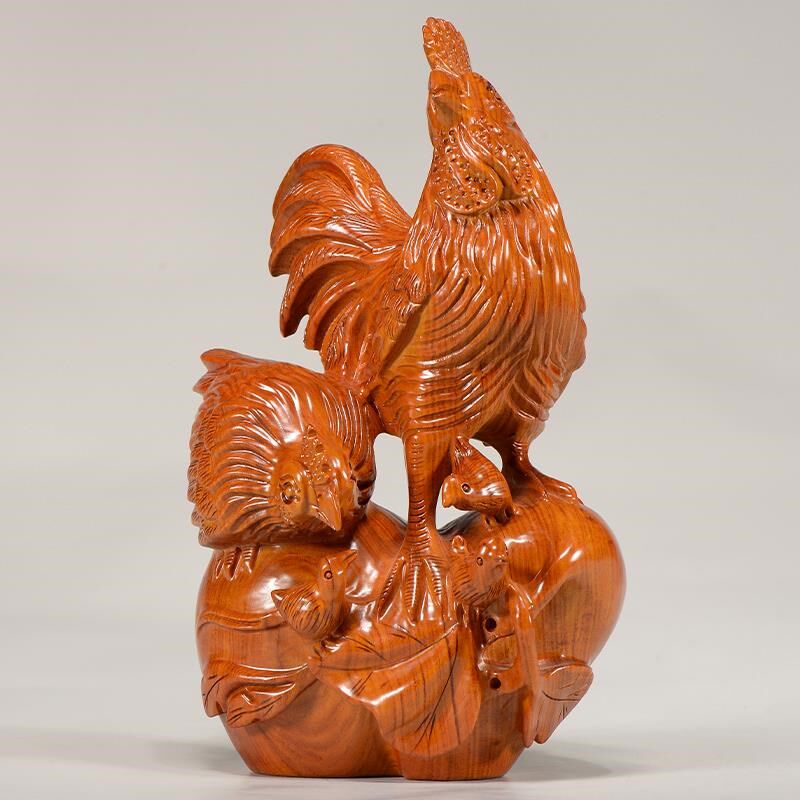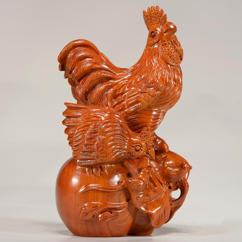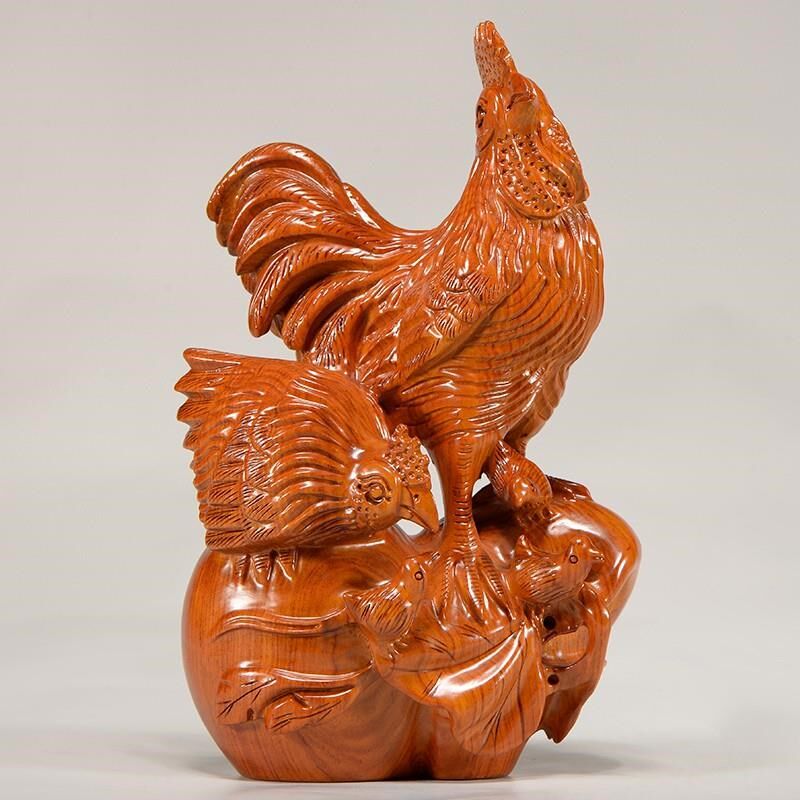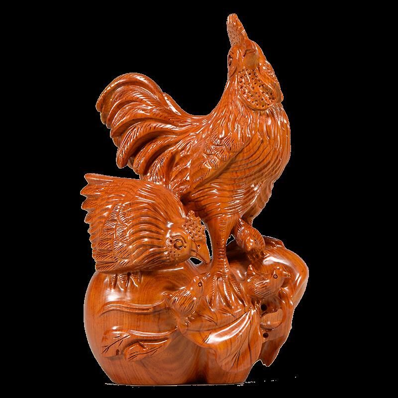 📚 速发花梨实木雕工十家福摆件木头根雕母鸡全二生肖红木家居刻艺礼