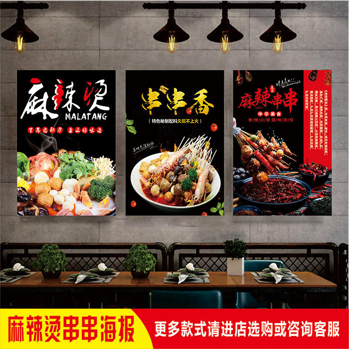 📚 餐厅小吃店夜宵麻辣烫冷锅火锅串串香图墙贴宣传广告摆摊车贴海报