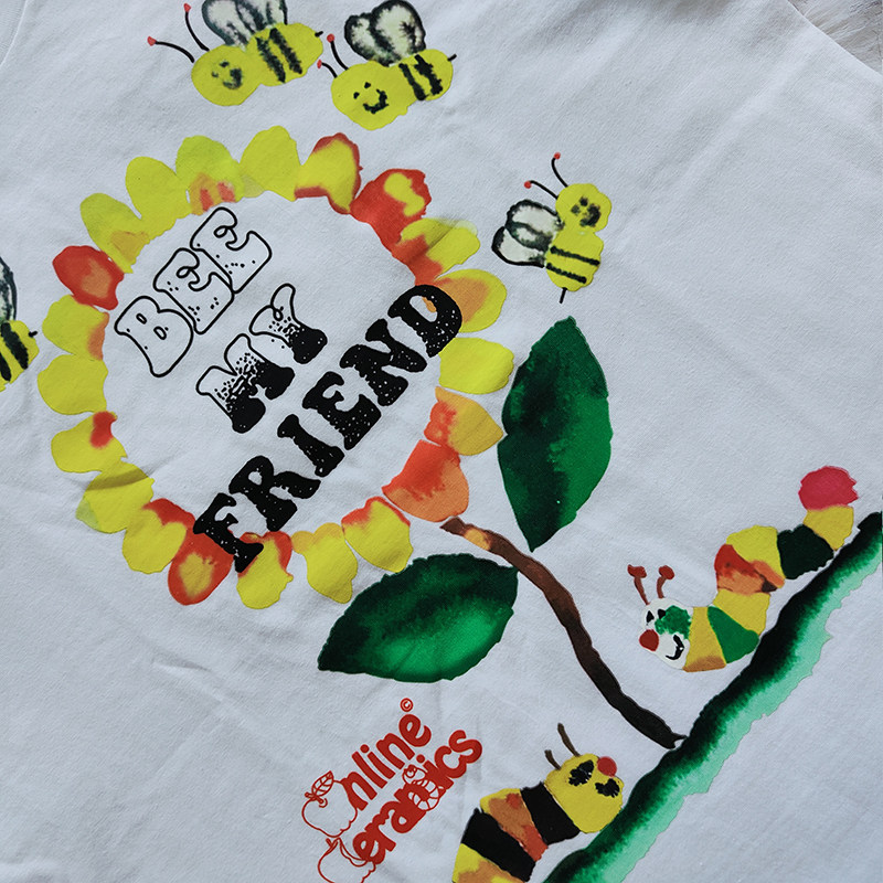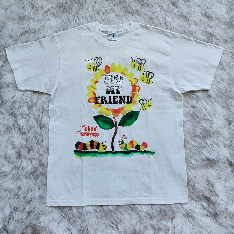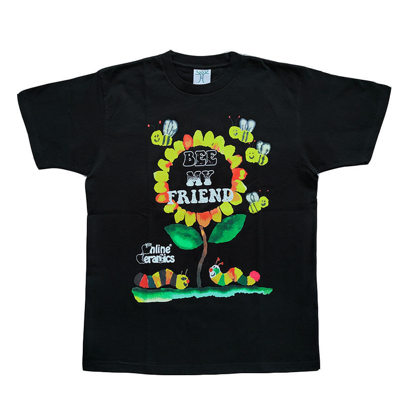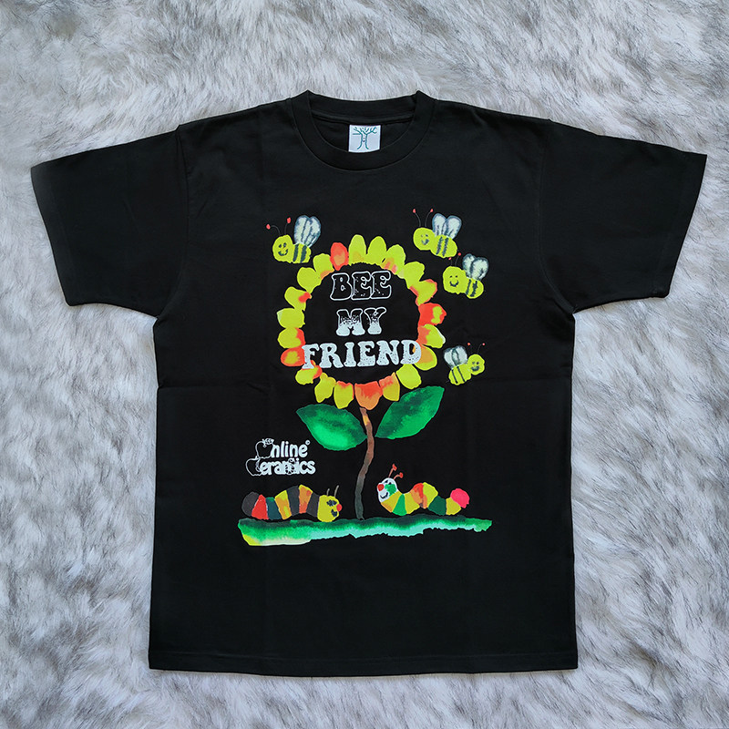 📚 欧美潮流新款Online Ceramics手绘水彩蜜蜂向日葵涂鸦短袖T恤