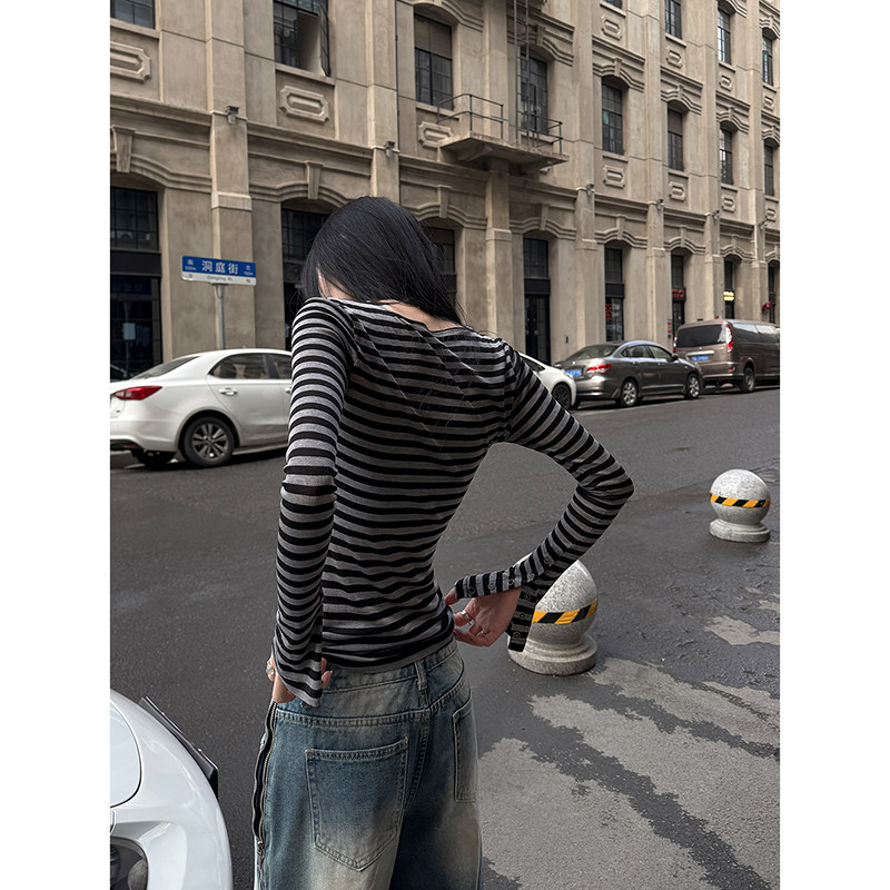 📚 Fanptntox松弛步调 微透条纹打底衫春季修身显瘦百搭天丝羊毛上衣