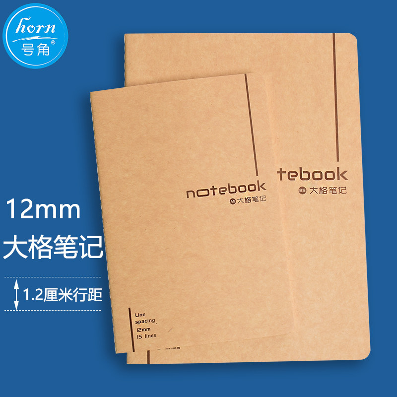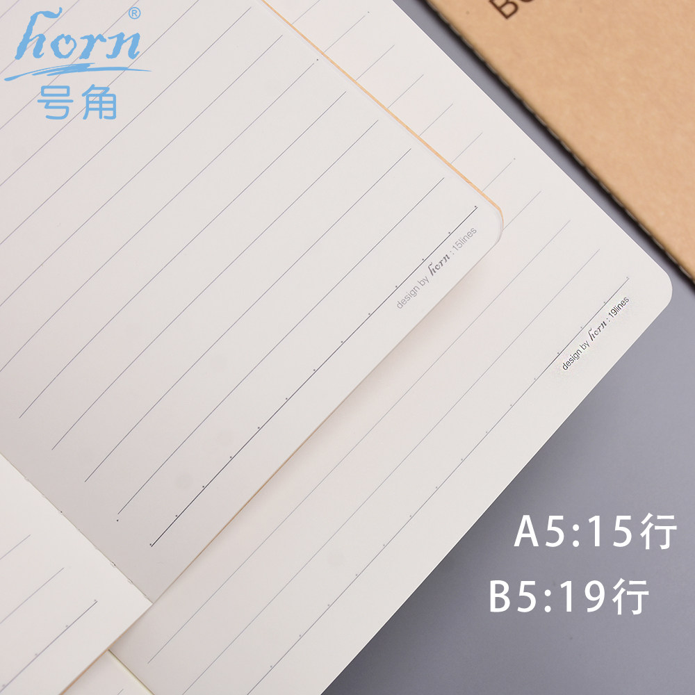📚 horn号角大格笔记本12mm宽行距学生用软抄本牛皮纸车线笔记推荐款