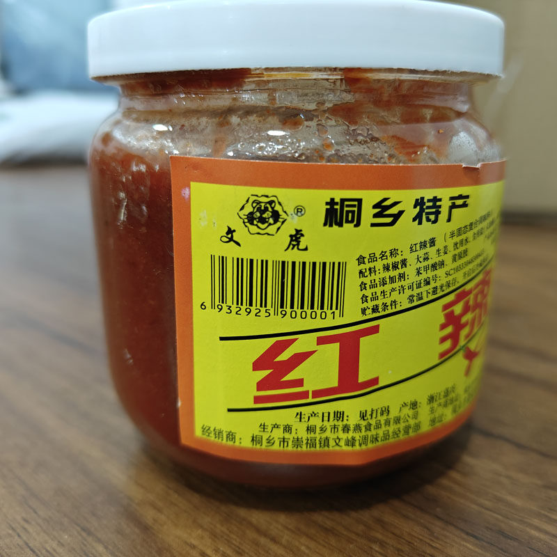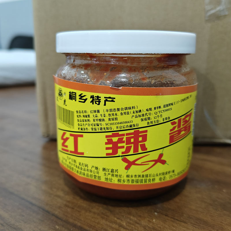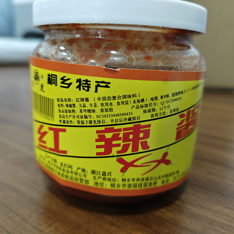 📚 桐乡特产文虎红辣椒酱250克餐饮面食调料调味酱辣酱
