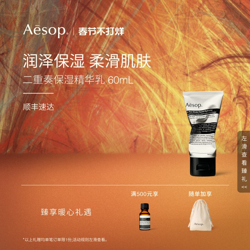 38¥ CZ225 I3STUMkMIry¥ https://m.tb.cn/h.7CwBTEY 【海外店】Aesop伊索 二重奏保湿精华乳 保湿滋养润肤温和乳液 --------------------- 【原售价】460元 【现售价】460元。