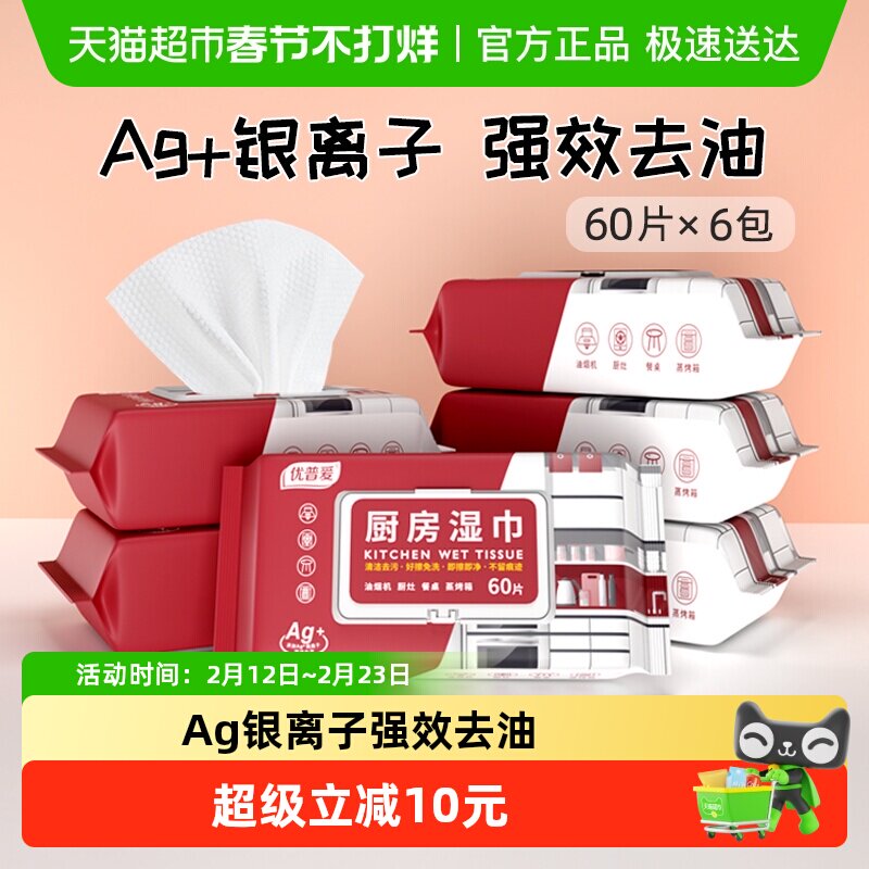 📚 优普爱厨房湿巾60抽*6包去污去油加大加厚家庭装一擦即净OD-588