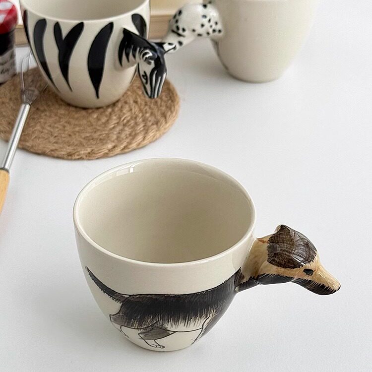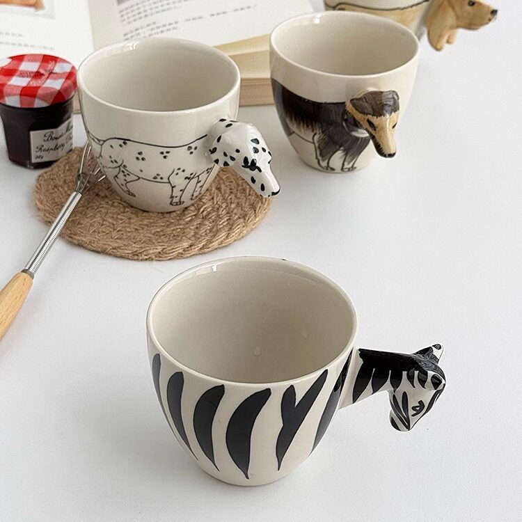 📚 安木良品 外贸原单 日式可爱动物重工艺手绘釉下彩陶瓷咖啡马克杯