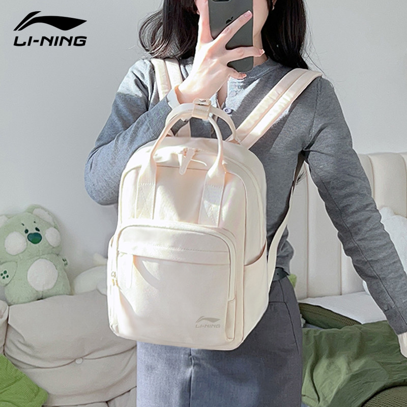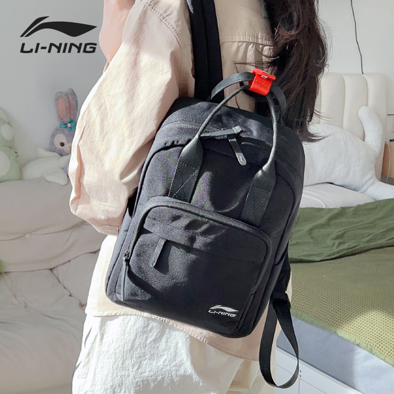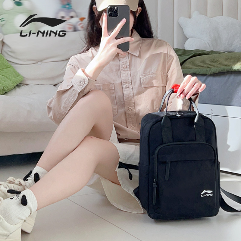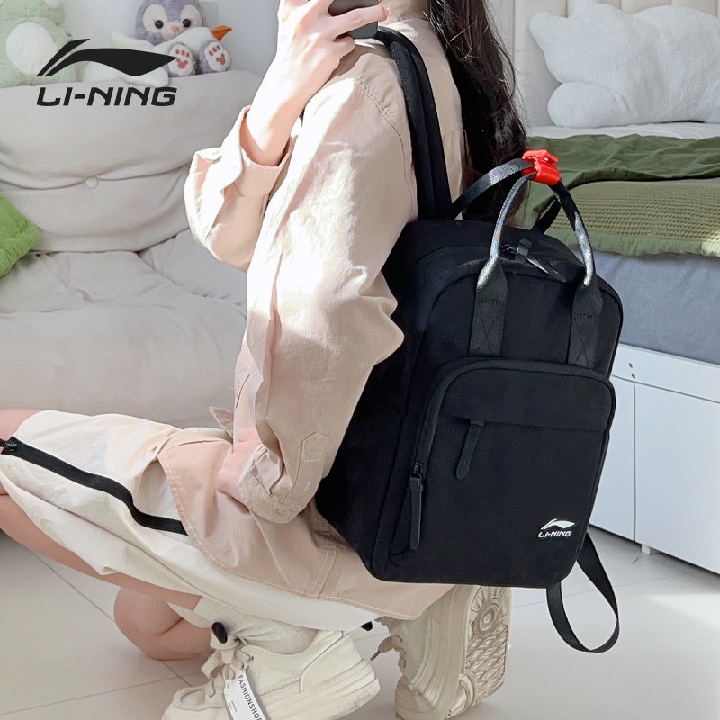 📚 李宁双肩包女红色新款便携简约休闲轻便手提通勤背包小学生书包男