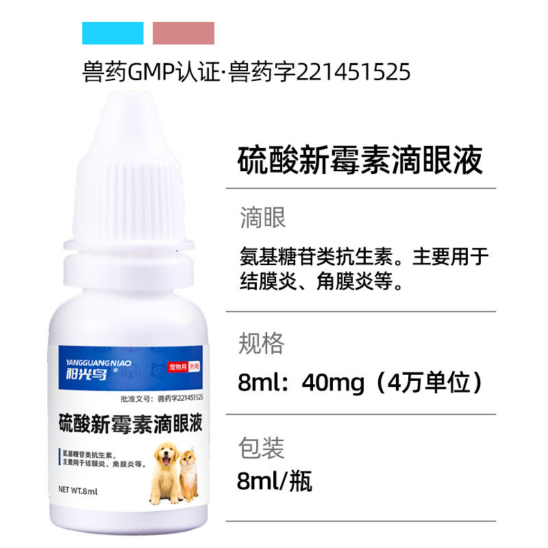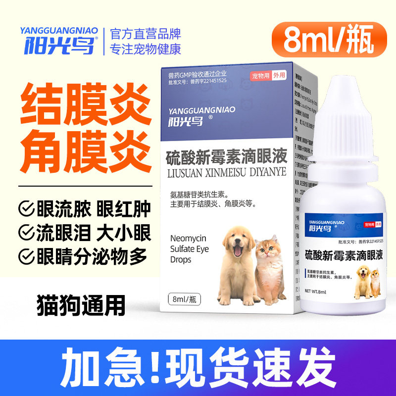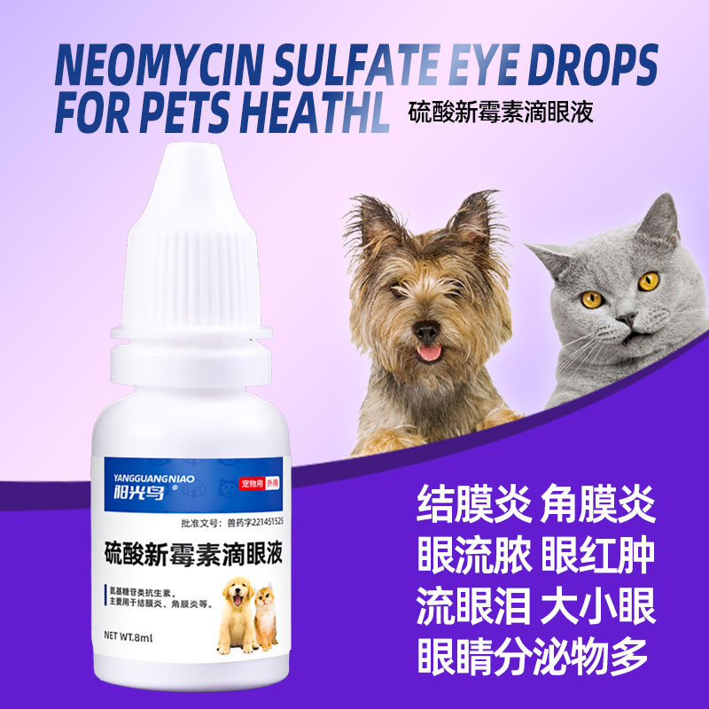 📚 硫酸新霉素宠物专用滴眼液狗狗猫咪眼睛消炎角膜炎发炎泪痕眼药水