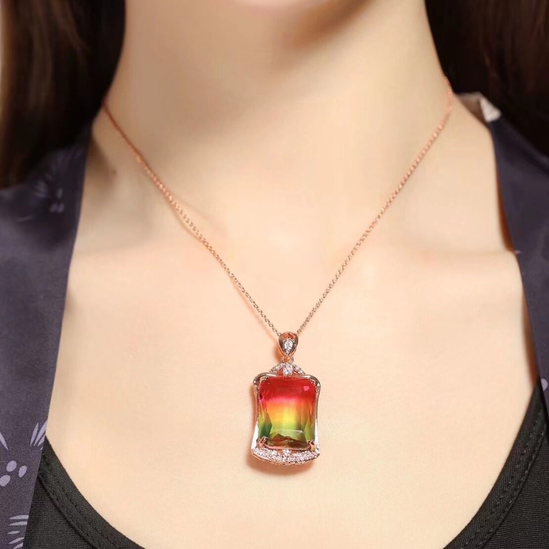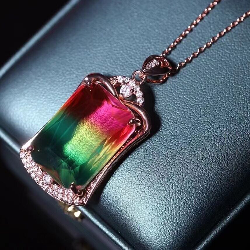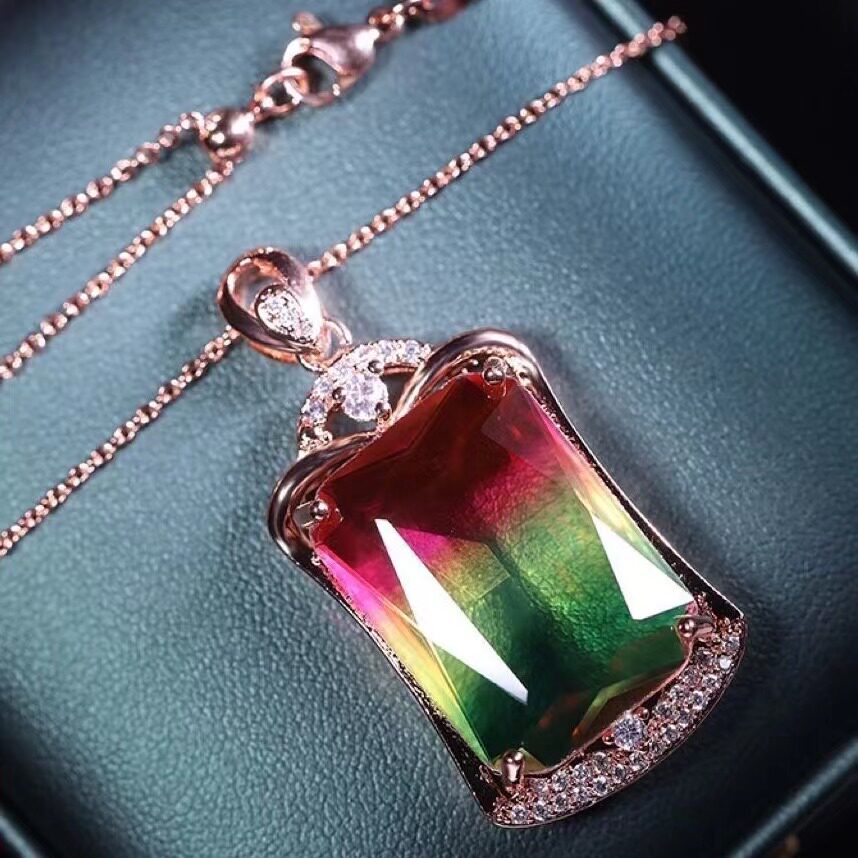 📚 特价巴西彩虹西瓜碧玺吊坠项链女款单坠闺蜜礼物气质上档次