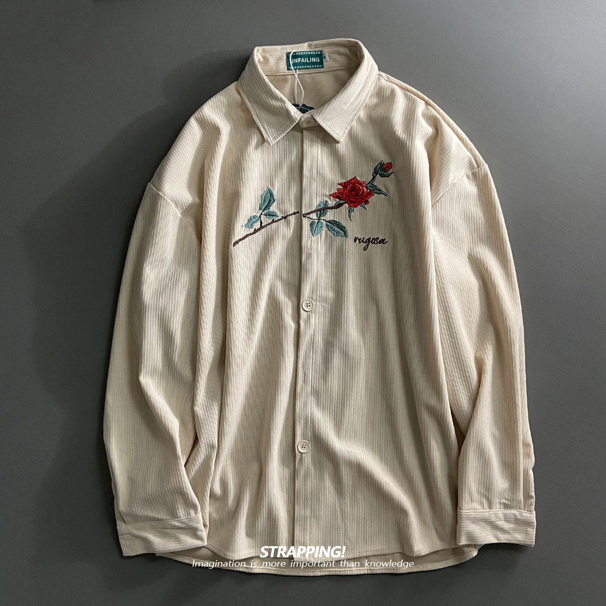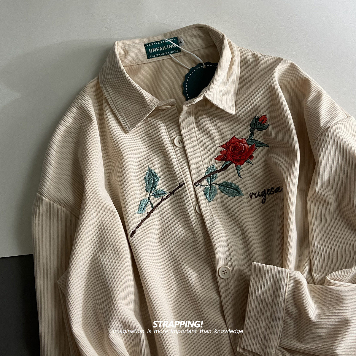 📚 STRAPPING玫瑰花刺绣灯芯绒复古长袖衬衫港风日系男女痞帅春秋