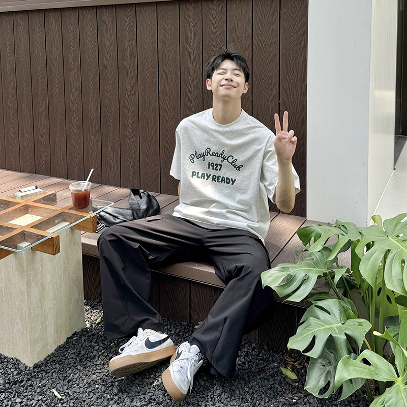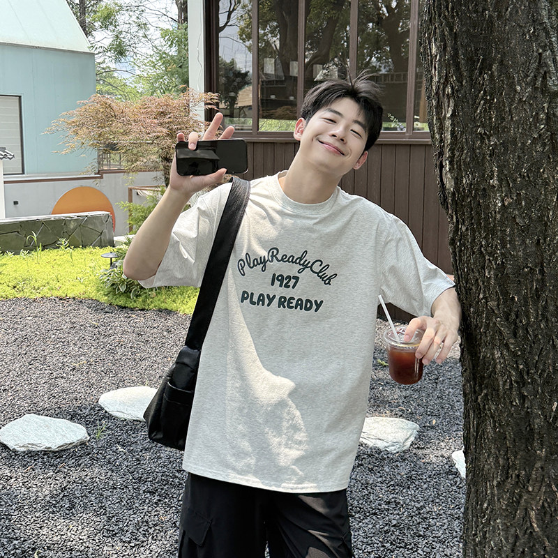 📚 暗物质250g白花灰索罗娜短袖T恤男夏季2026新款百搭宽松休闲印花