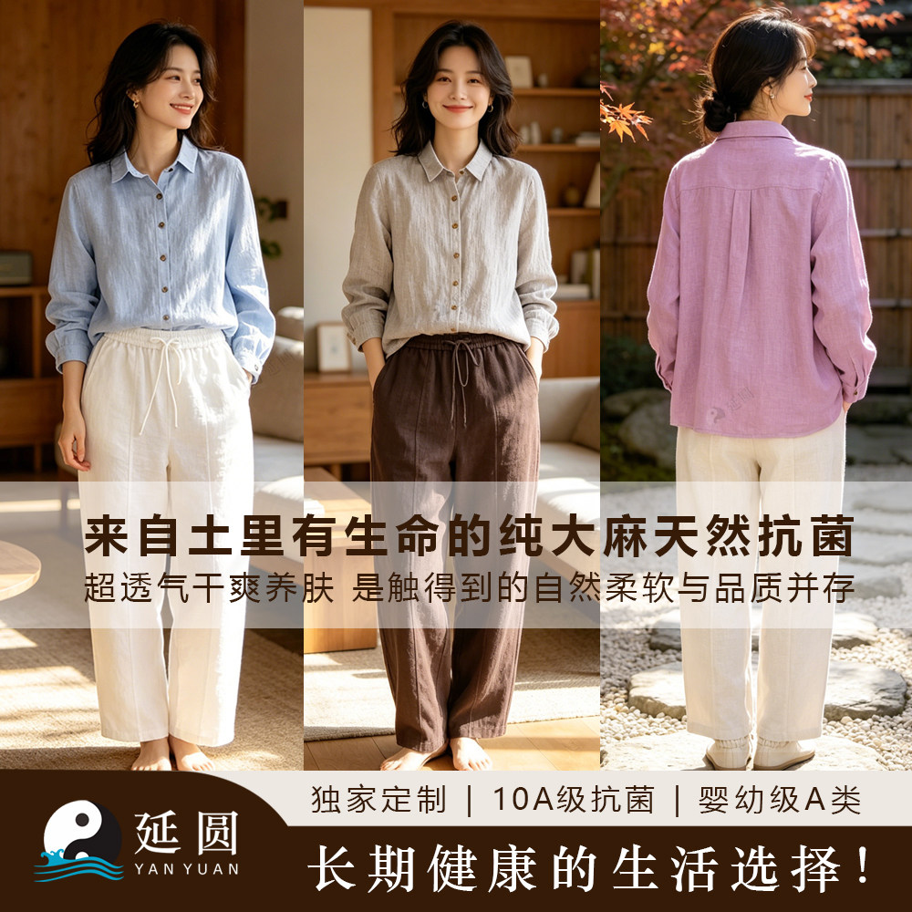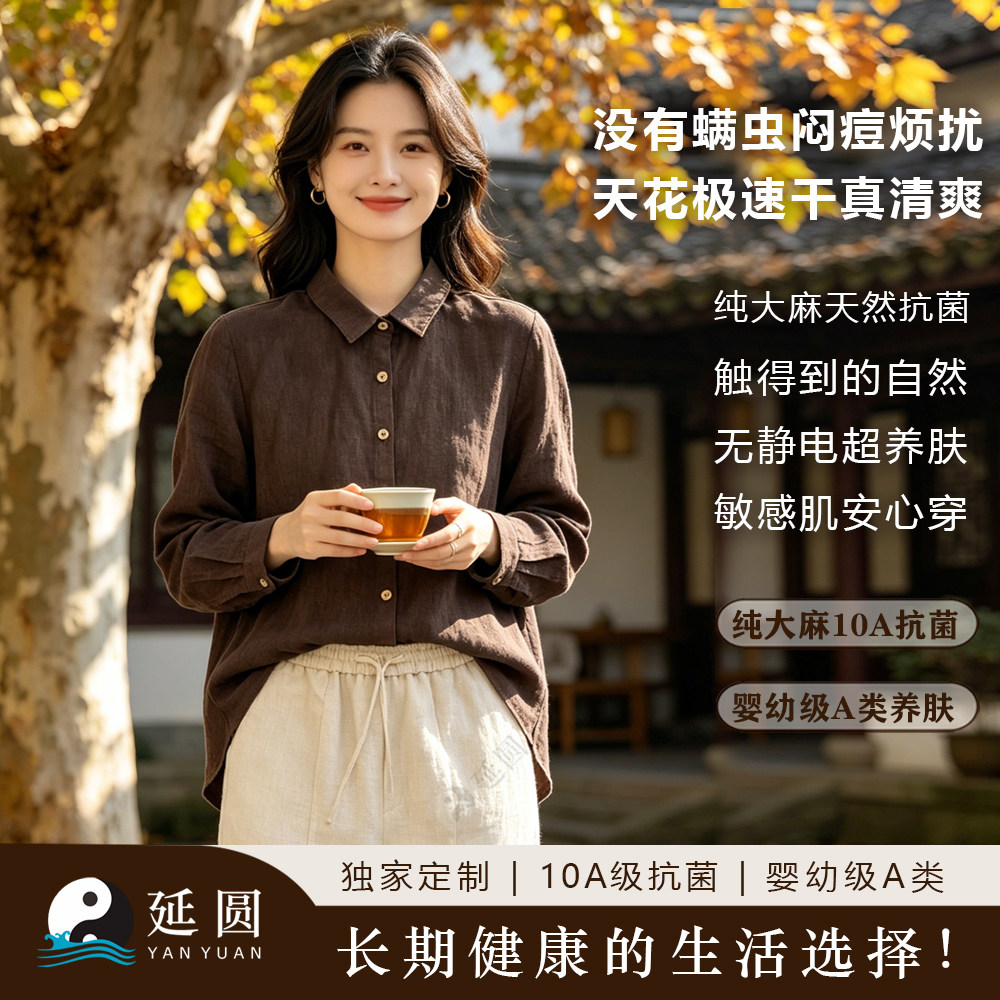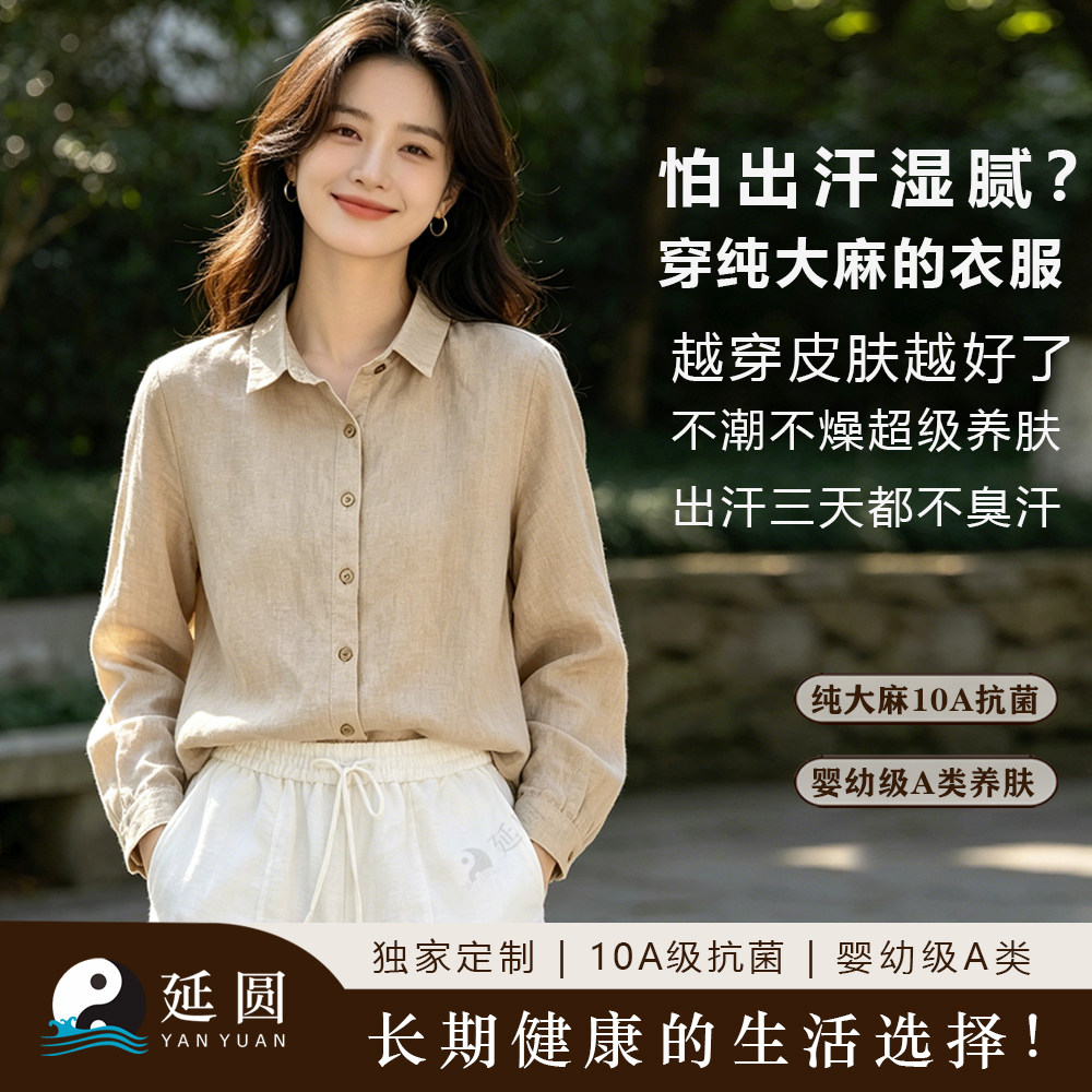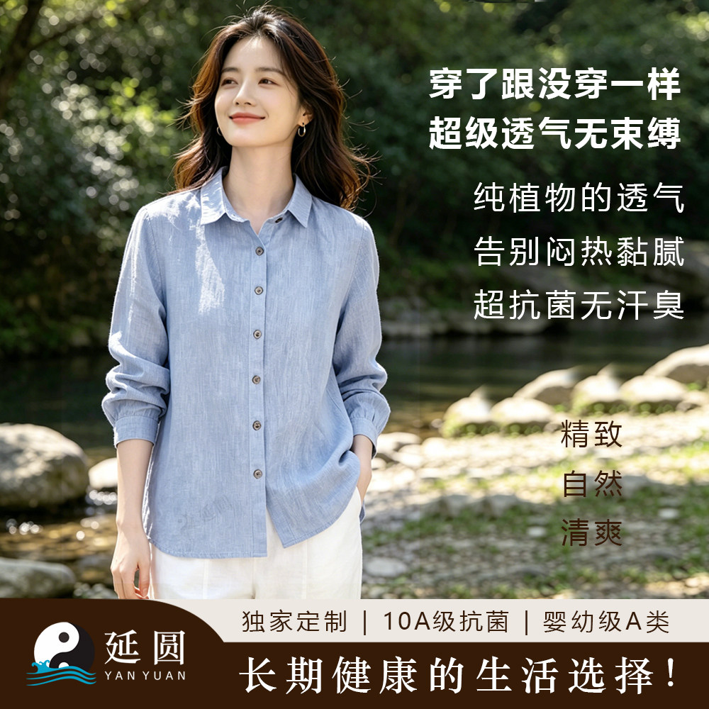 📚 延圆纯大麻10A抗菌长袖衬衫女婴幼级透气养肤纯汉麻吸汗速干亲肤