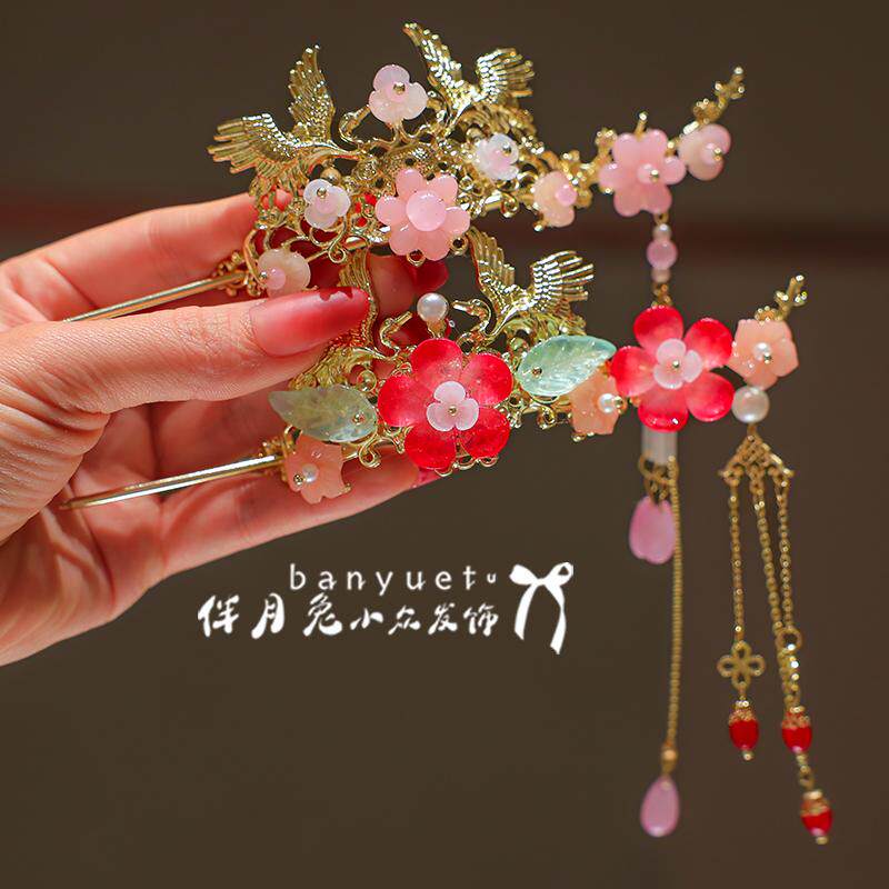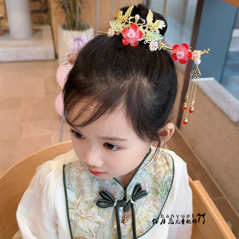 📚 伴月兔儿童汉服头饰丸子头流苏发冠超仙女童古风步摇头饰盘发簪子