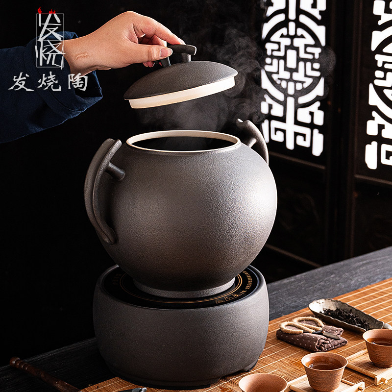 📚 发烧陶6.5L大容量烧茶罐新中式茶馆饮茶桶养生火山石电陶炉煮茶釜