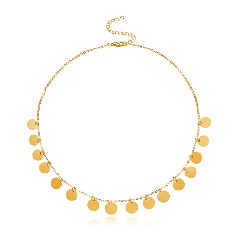 亲爱的朋友们,今天我要分享一款令人心动的欧美跨境饰品——圆片亮片吊坠锁骨链!简约时尚的设计,让我一见倾心,仿佛走进了一款创意与简约并存的女士项链新品。