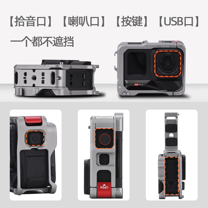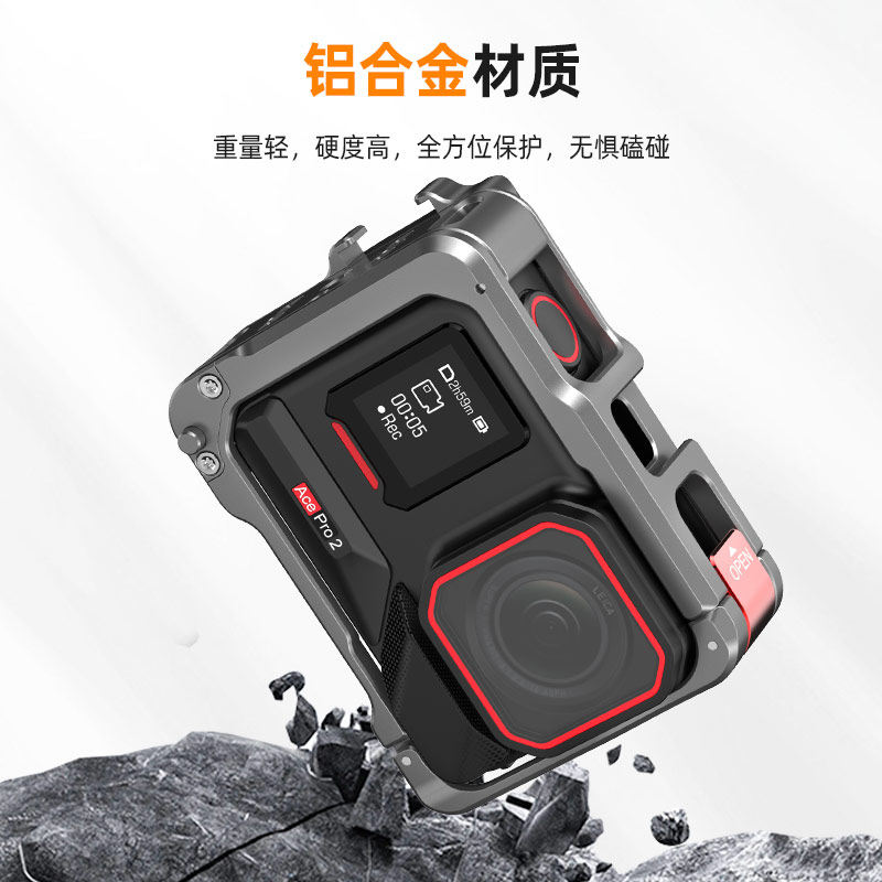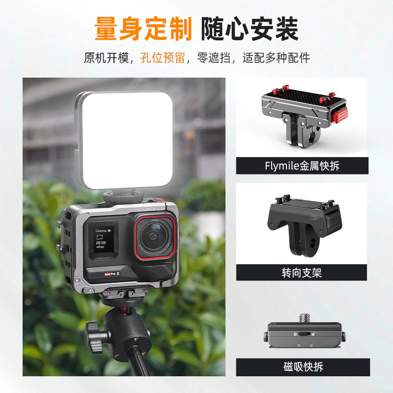 📚 Flymile适用影石Insta360 AcePro2金属兔笼运动相机保护边框手柄户外磁吸快拆底座转接拓展框防摔配件
