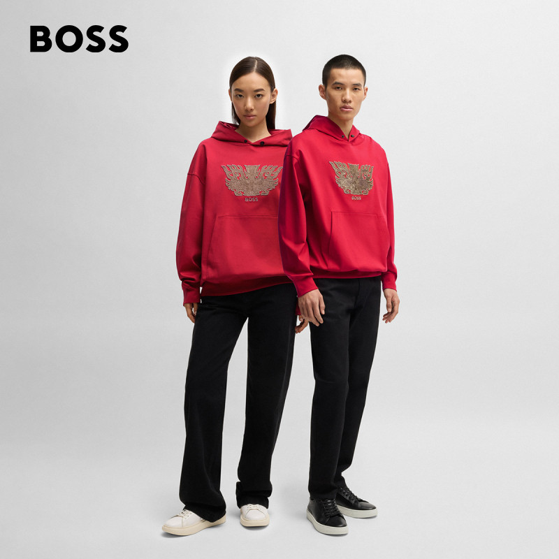 📚 【100%棉】【BOSS博斯X封神联名】男士常规版型红色连帽卫衣