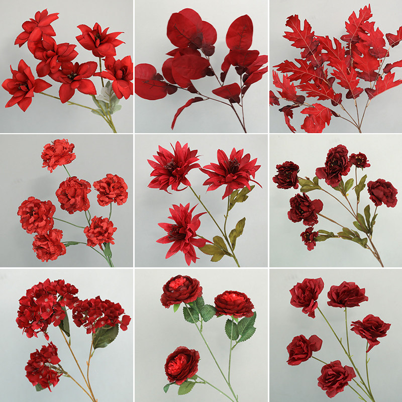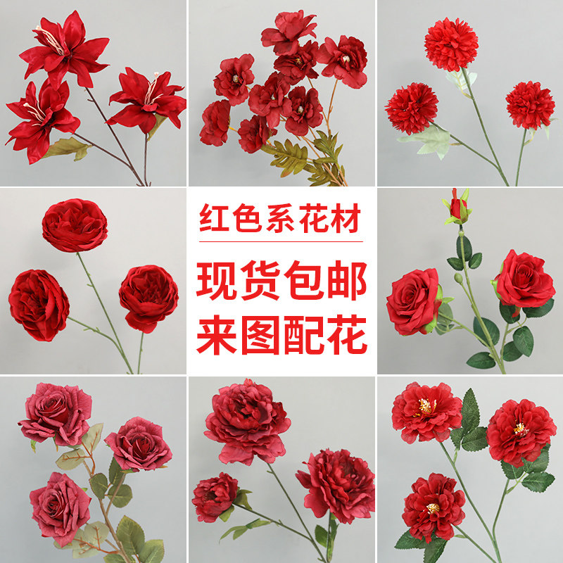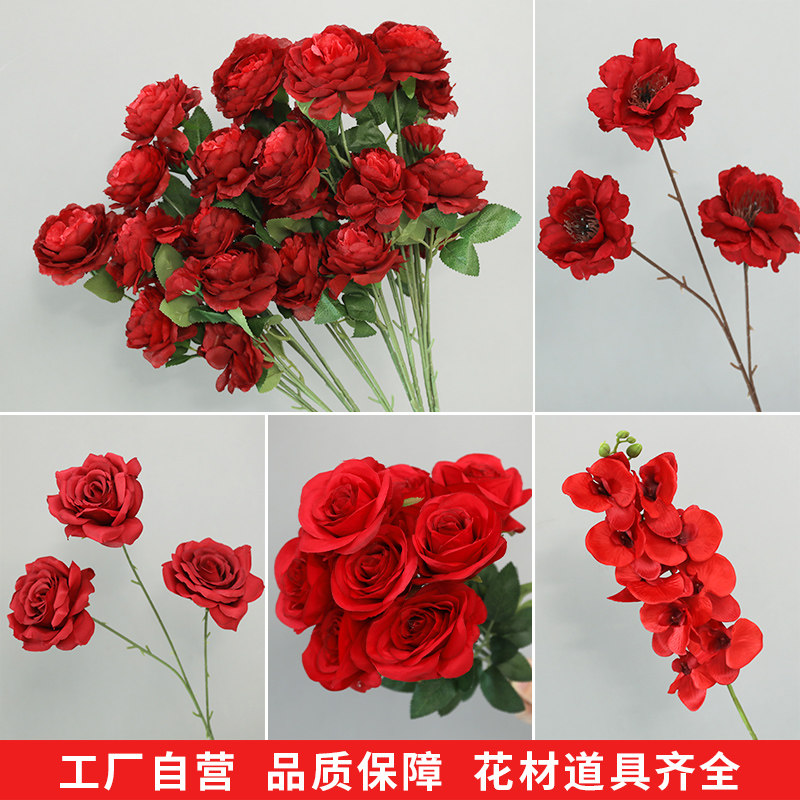 📚 婚庆红色仿真花婚礼装饰花吊顶布置假花花束花艺插花材路引花绢花