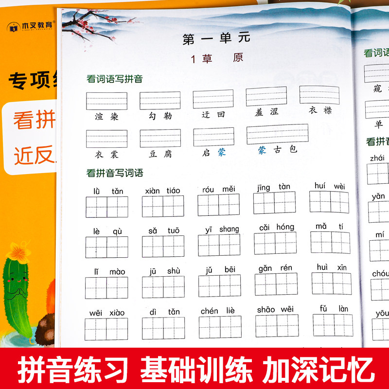 📚 六年级上册下册语文专项组合训练看拼音写词语生字注音组词造句近反义词多音字强化练习全套人教版小学六年级语文教材同步练习册题