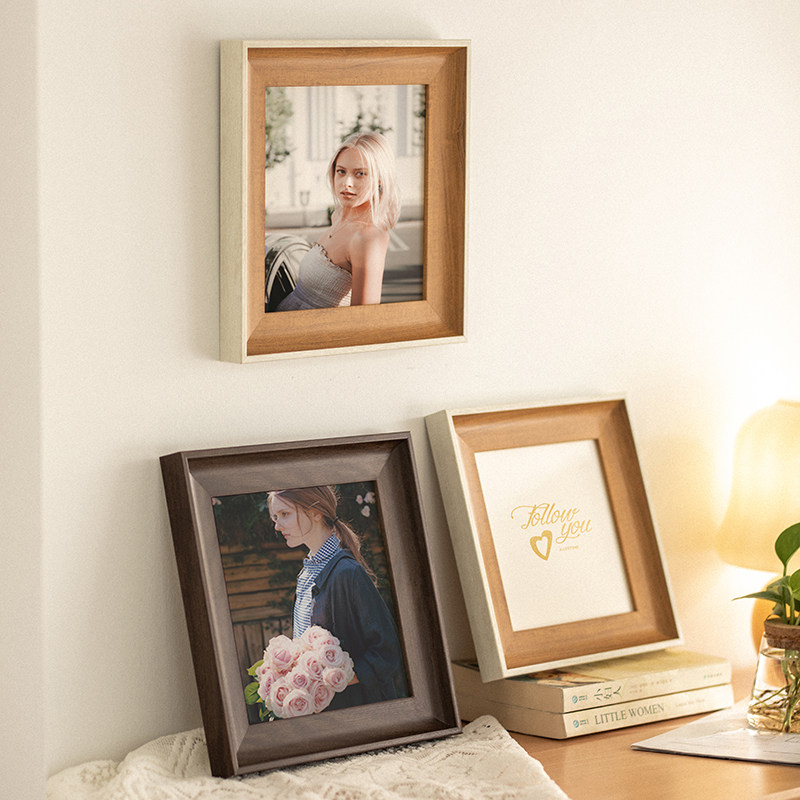 📚 洗照片打印加做成相框摆台高级感复古正方形空框6寸8画框外框挂墙