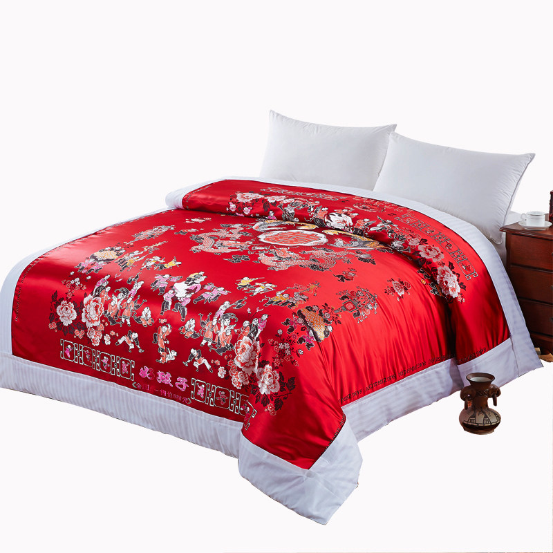 📚 婚庆杭州丝绸七彩织锦缎软缎结婚被套绸锻龙凤百子被面子结婚被罩