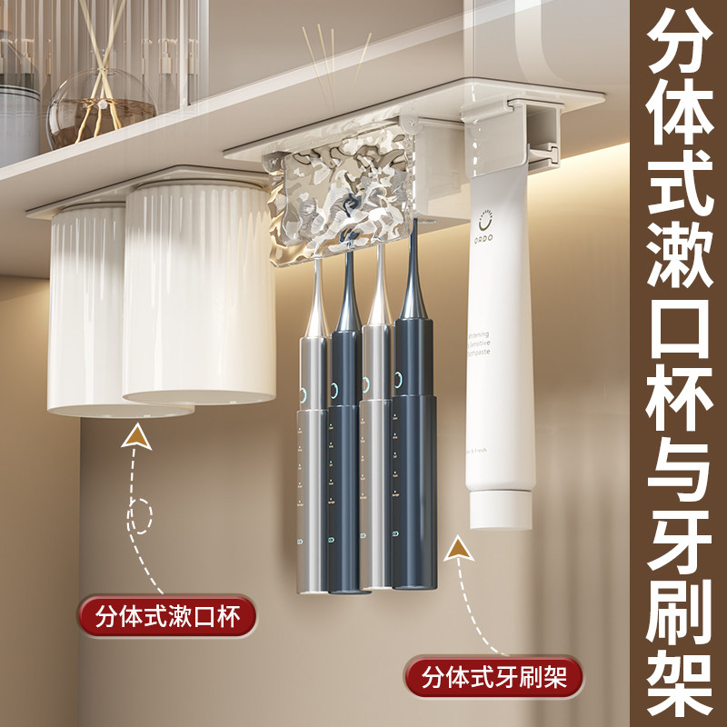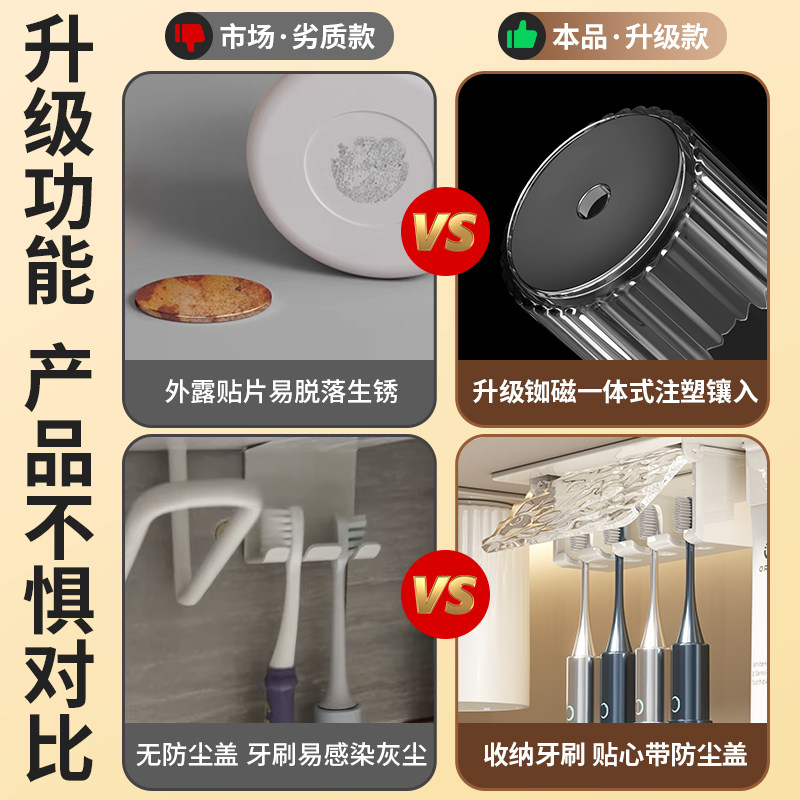 📚 磁吸牙刷架漱口杯一家三口四口倒挂电动牙刷架子洗漱牙杯置物架子