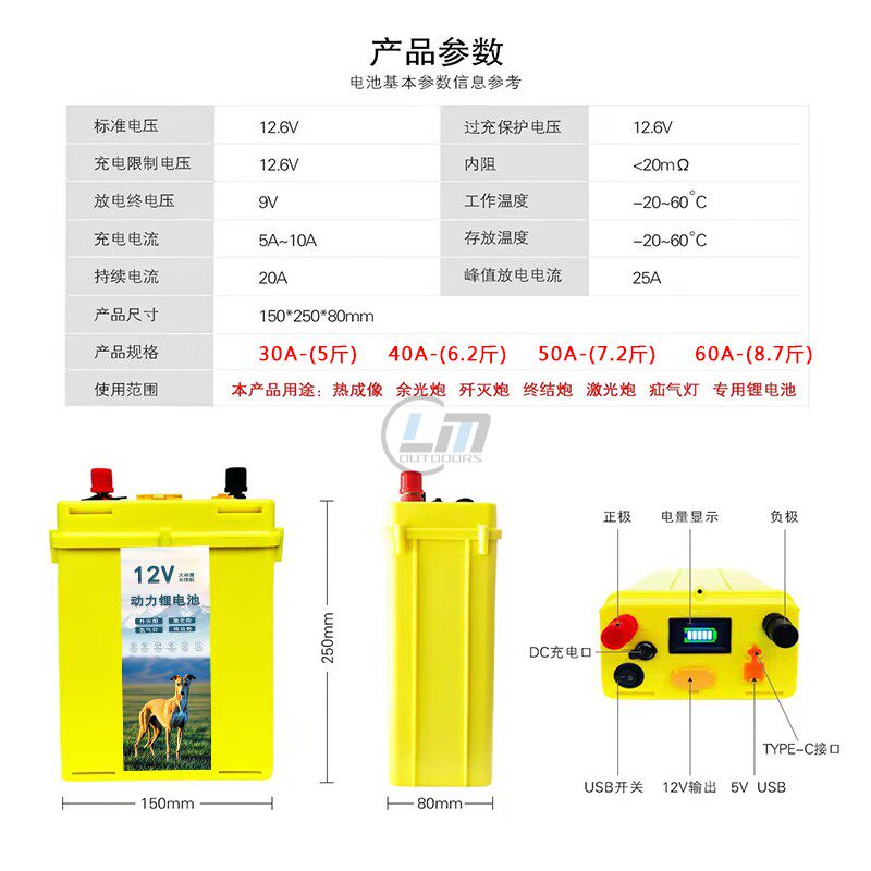 📚 12v伏锂电池足容大容量30AH安外接灯头专用户外长续航便捷通用