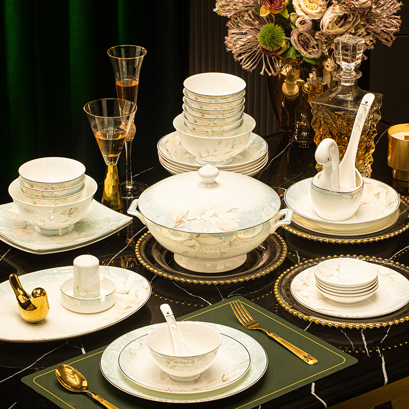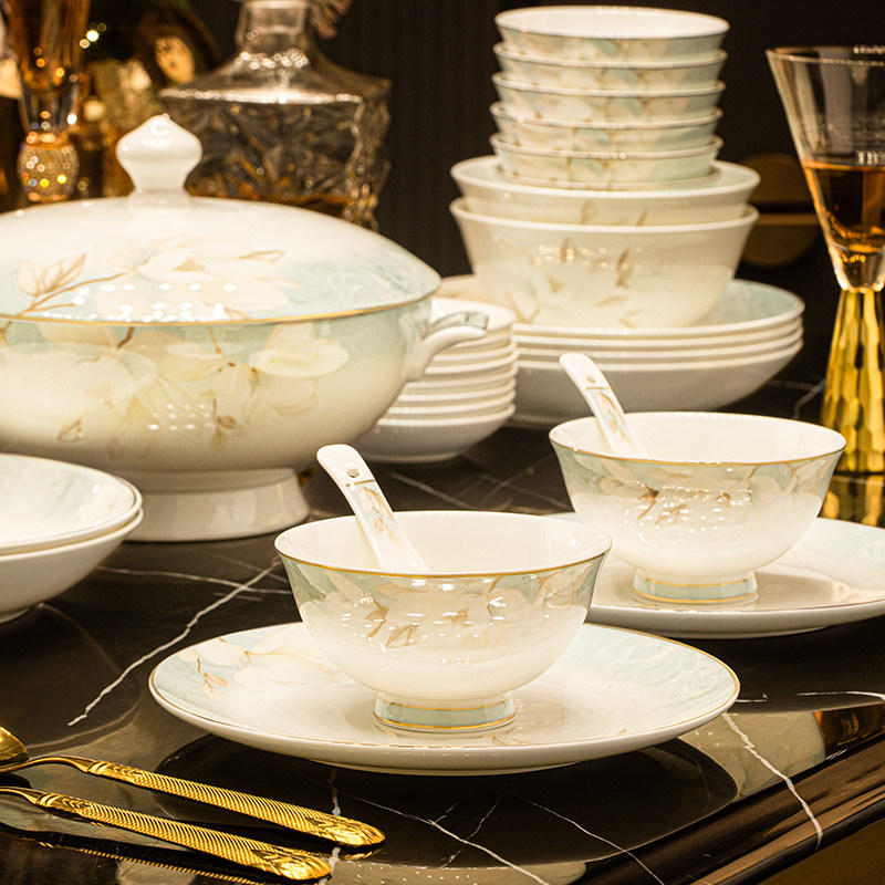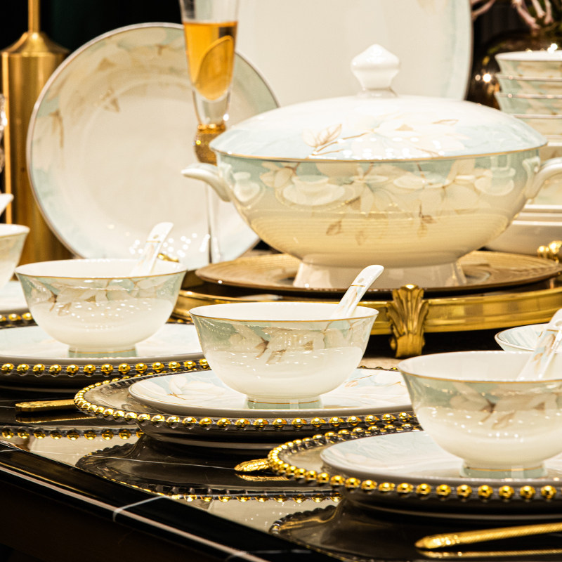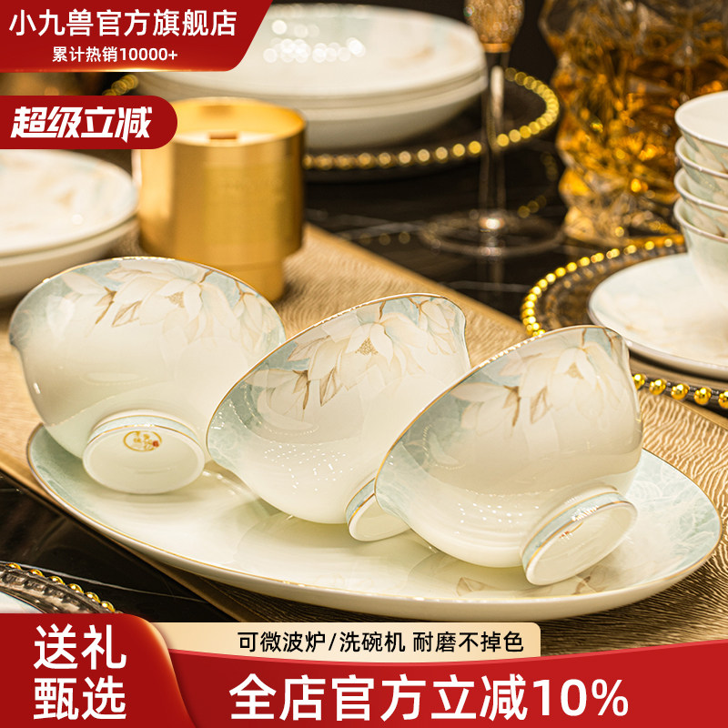 📚 碗家用景德镇高温陶瓷餐具轻奢高级感中式碗盘碟套装乔迁新居礼盒