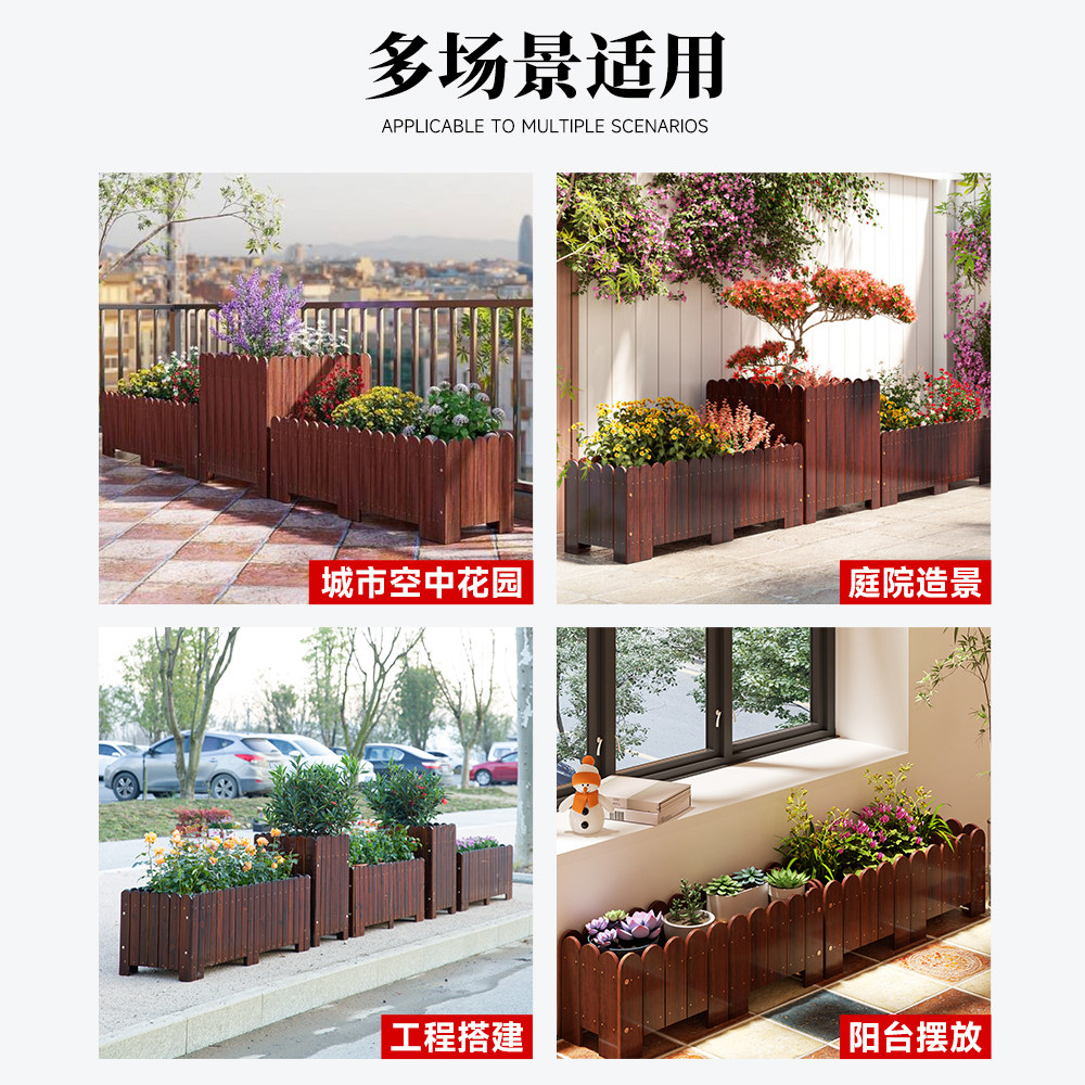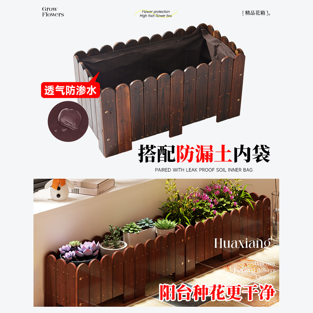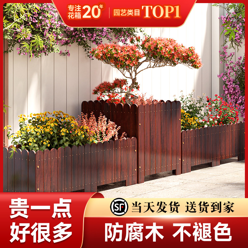 📚 防腐木花箱种植箱户外阳台庭院花箱组合长方形院子花槽花盆实木质