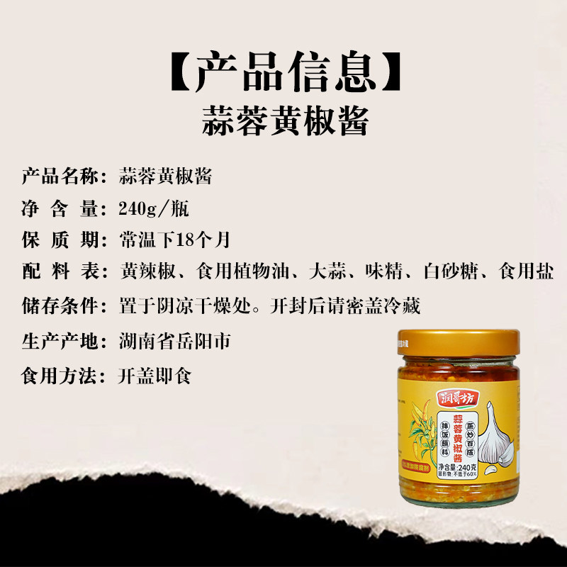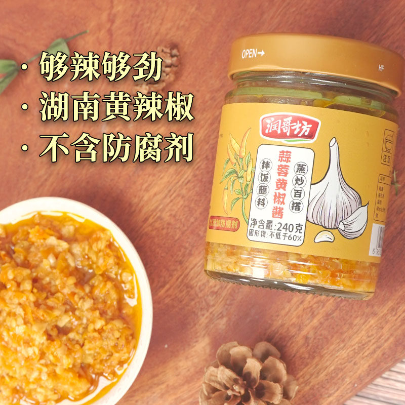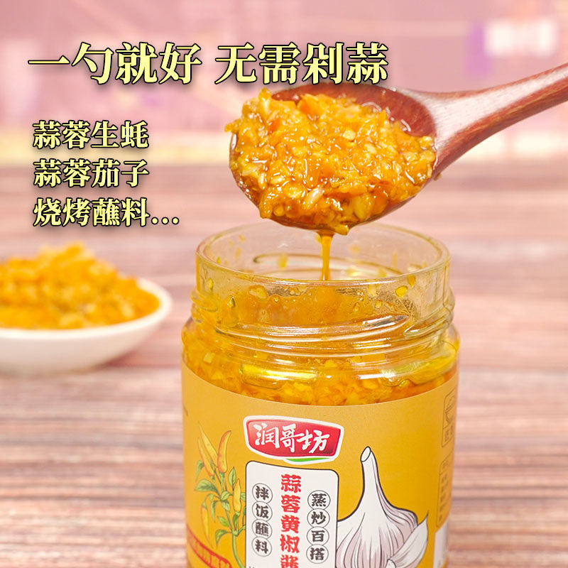 📚 润哥坊蒜蓉黄椒酱湖南特产辣椒酱下饭菜烧烤蒜泥蘸料蒸炒调味酱
