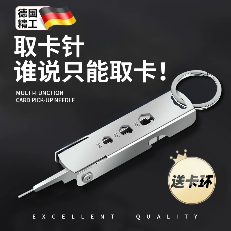 📚 德国多功能手机取卡针高档苹果iPhone拔卡针sim手机卡针通用钥匙扣卡槽挂件卡针便携式高级安卓随身换卡神器