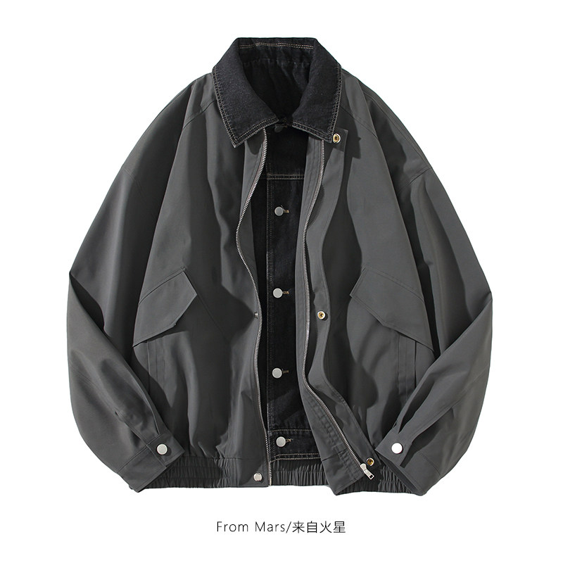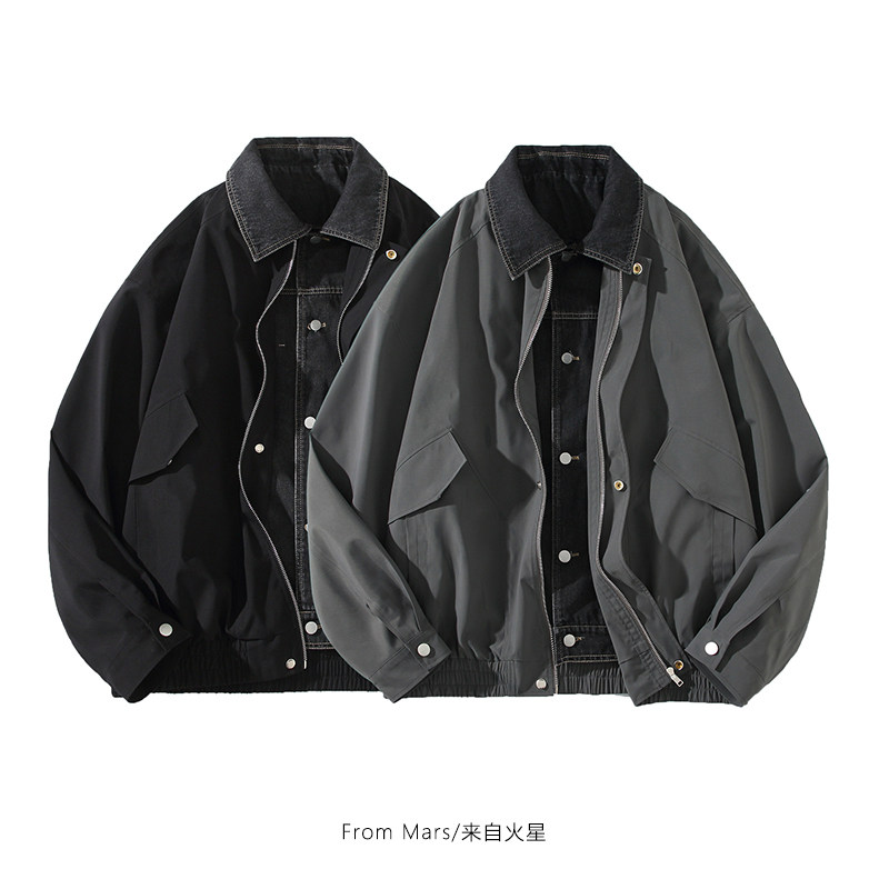 📚 From Mars 真假难辨 潮牌街头假两件拼接牛仔男宽松薄款百搭外套
