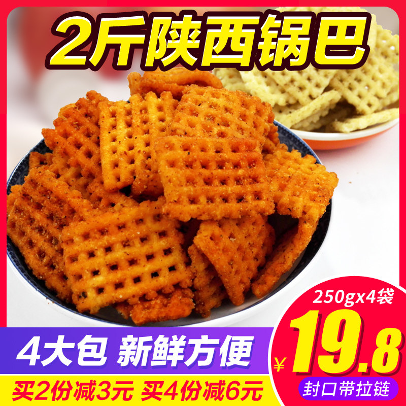 📚 陕西锅巴豆香椒香麻辣味孜然味原味休闲膨化零食多规格整箱装包邮