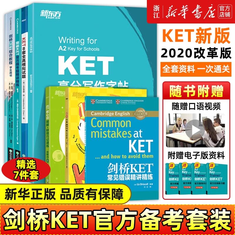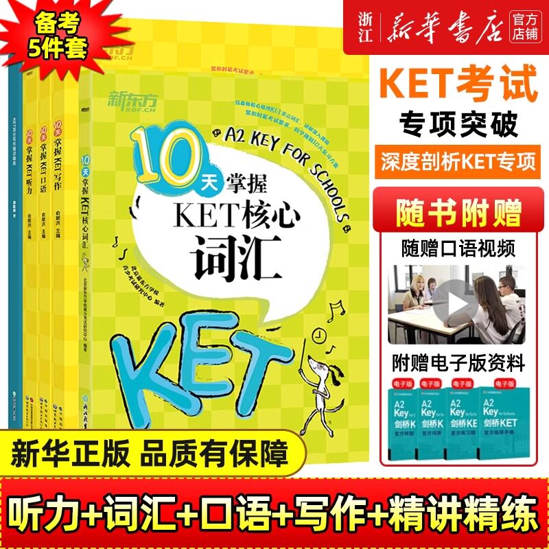 📚 新东方KET全集综合教程 核心词 学练测核心语法10天口语听力写作备考指南8套全真题高分写作字帖高频词常见错误模考题基础强化练习