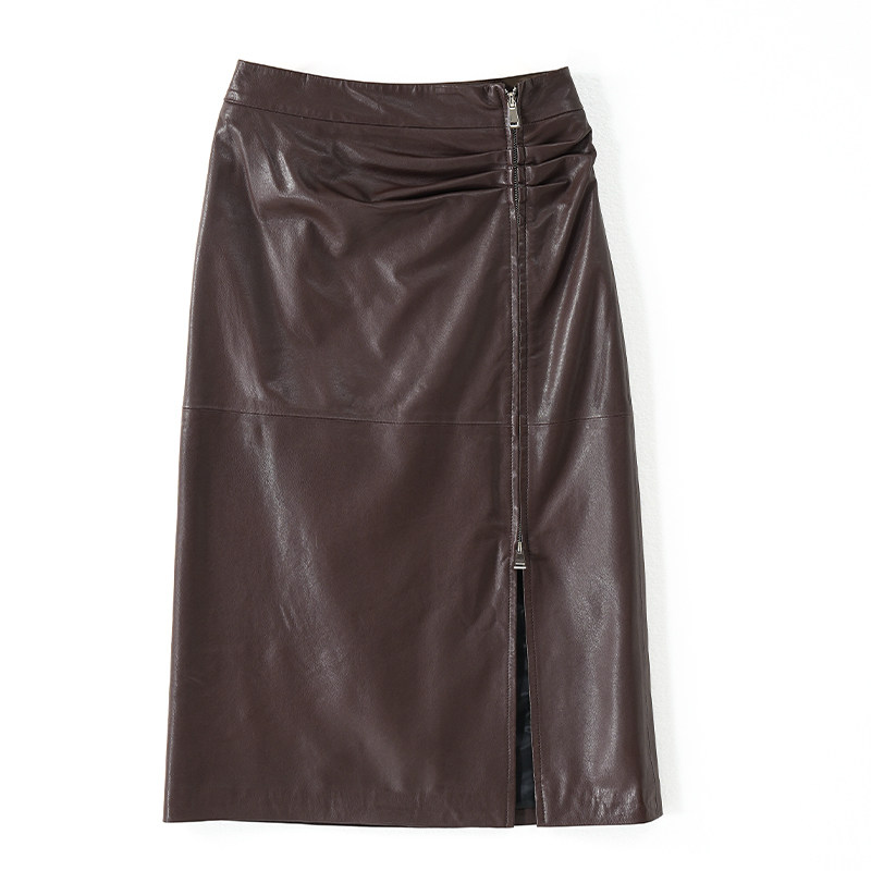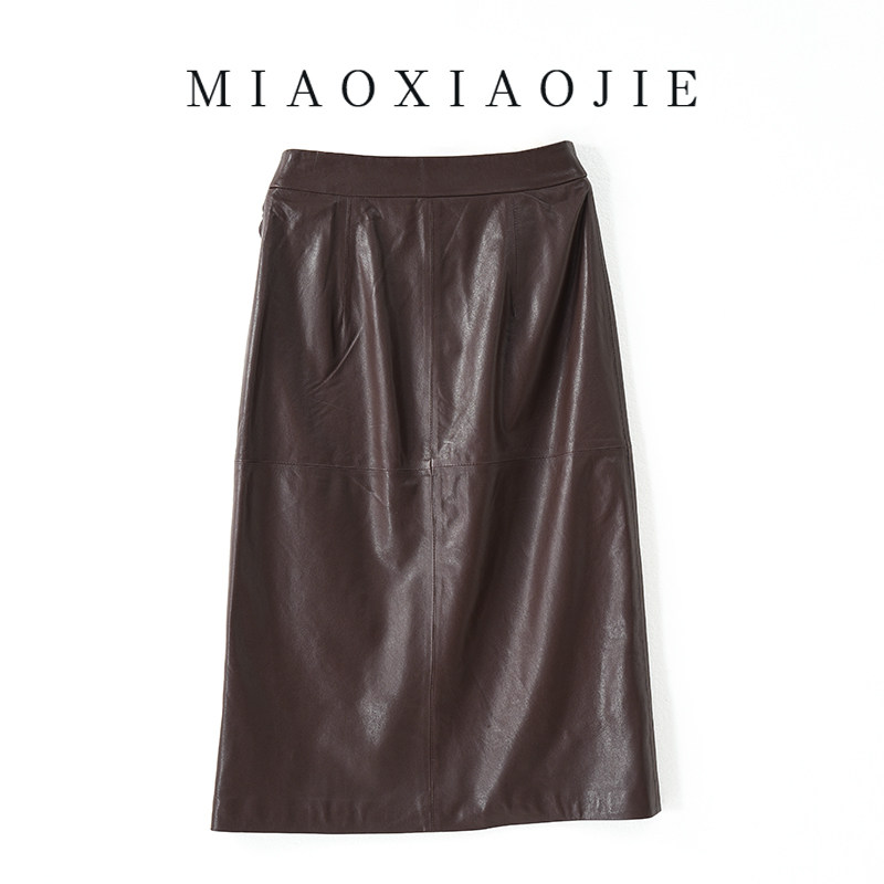 📚 植鞣绵羊皮真皮半身裙中长裙女显瘦高腰包臀开叉一步裙2025新款