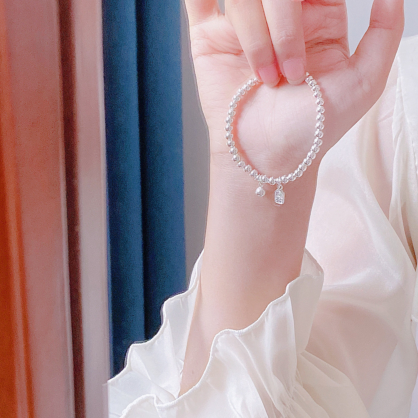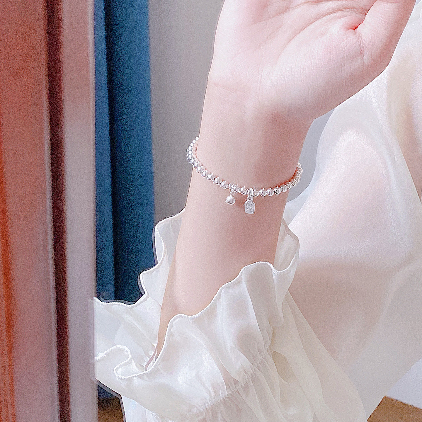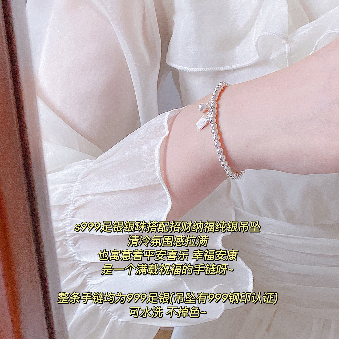 📚 「招财纳福」s999足银小银珠豆豆光面圆珠纯银手链简约小众手串女