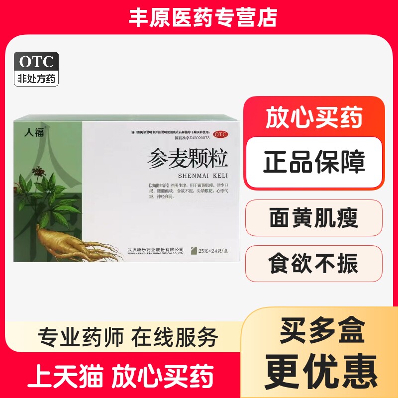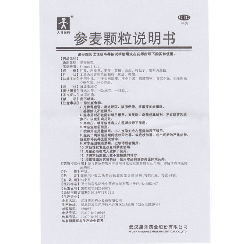 📚 人福医药 参麦颗粒 25g*24袋 养阴生津 面黄肌瘦 津少口渴