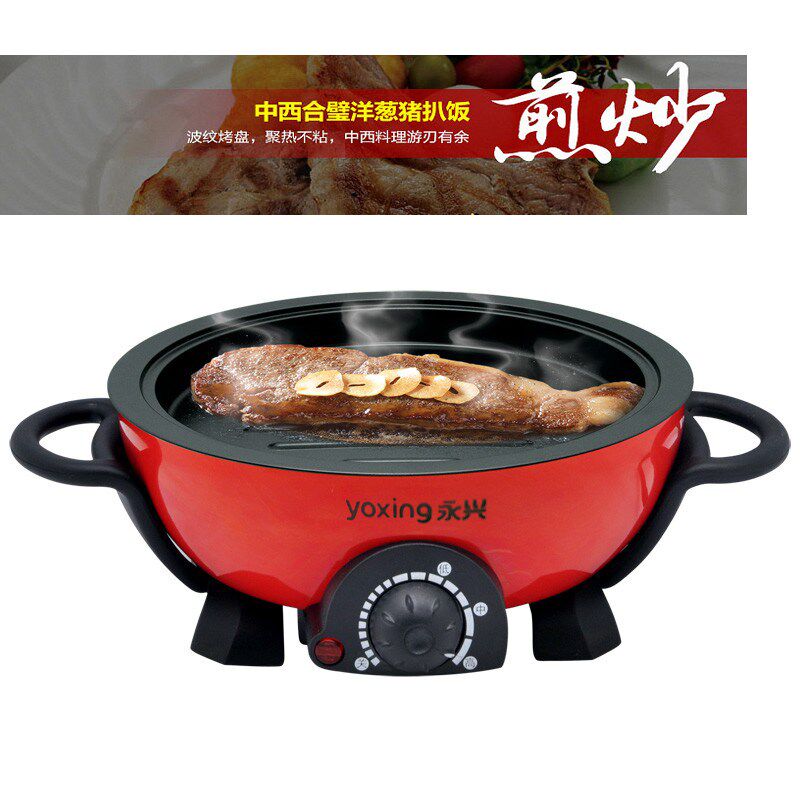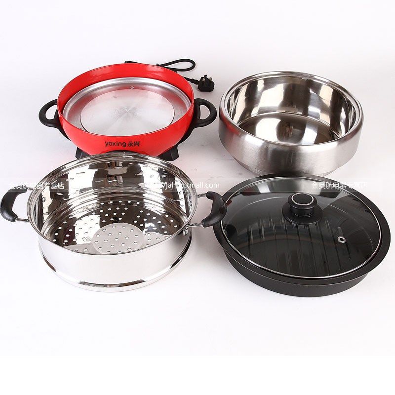 📚 永兴电火锅 多功能分体式电煮锅家用304不锈钢电热锅带蒸笼烤盘