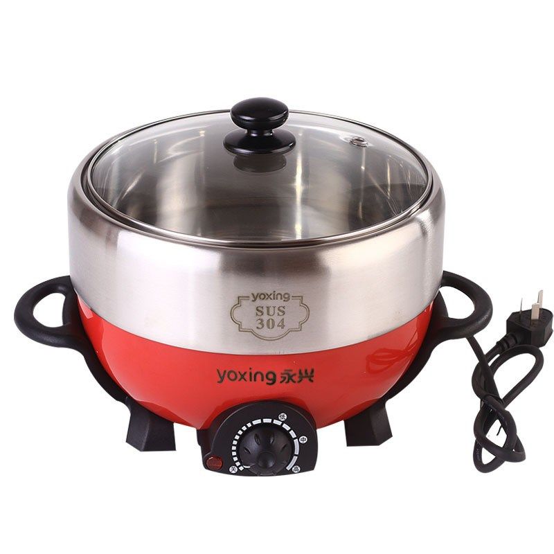 📚 永兴电火锅 多功能分体式电煮锅家用304不锈钢电热锅带蒸笼烤盘