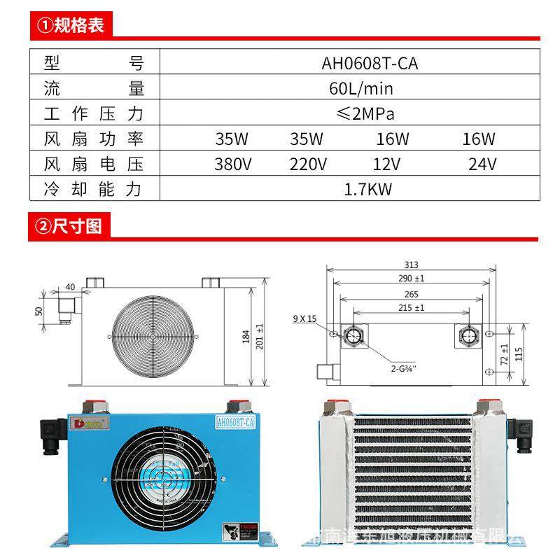 📚 东旭液压风冷却器AH0608T吊车60L油散热器小型挖机车用冷却器