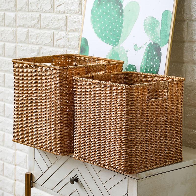 📚 闲储定制格子柜收纳筐日式仿藤编书柜置物篮收纳盒储物箱编织篮子