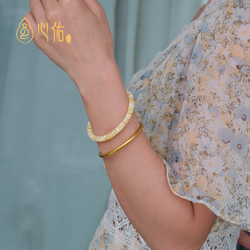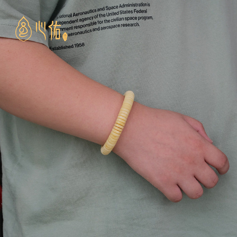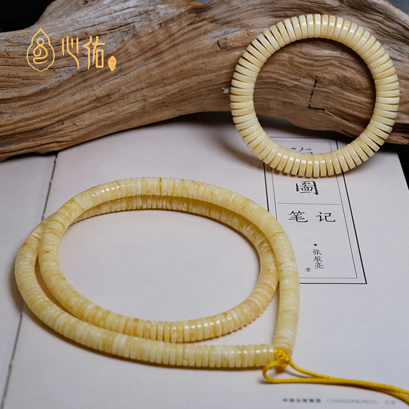 📚 天然保真 精工蜜蜡药片手串女款正品 俄料鸡油黄白花琥珀隔片手链