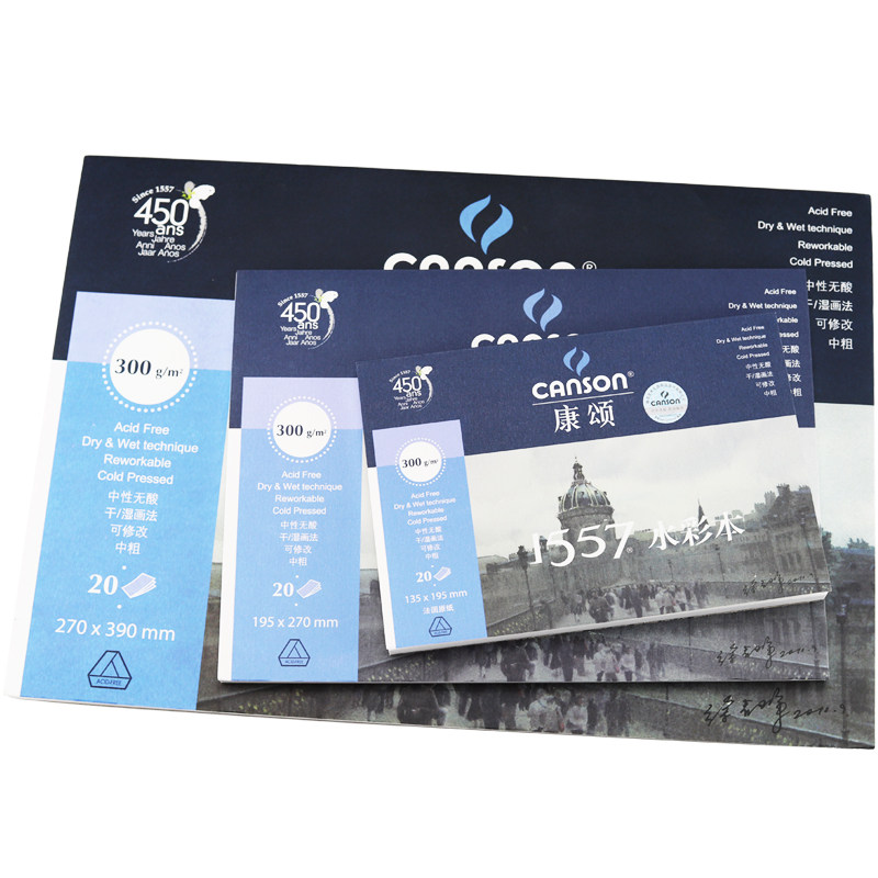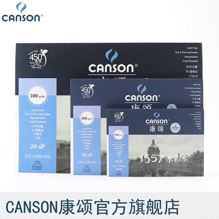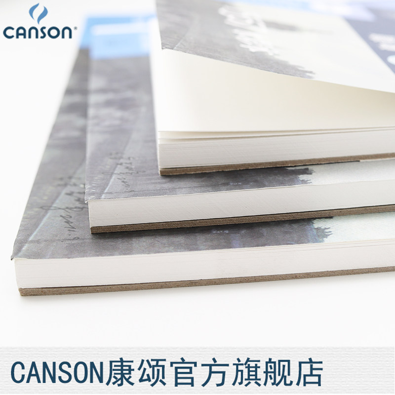📚 CANSON康颂1557水彩本300g20页彩铅本水粉素描设计绘图幅面8K单面封胶无酸自然纹路中粗偏细本白纸